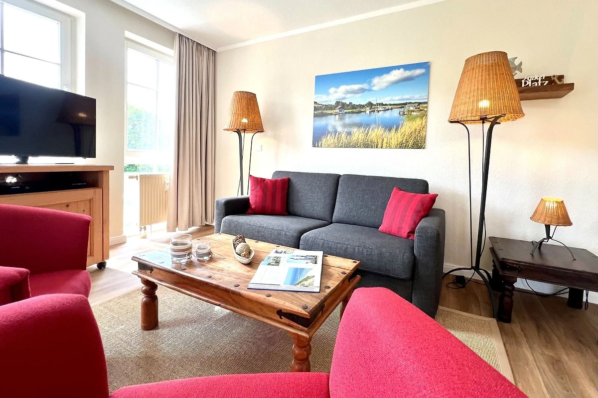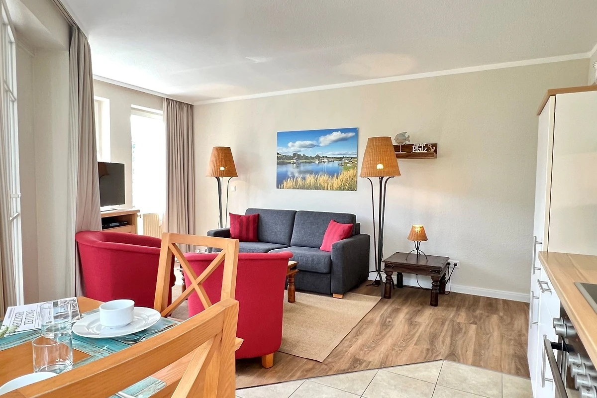 Das Schlafzimmer ist mit Verdunklungsmöglichkeiten und einem Doppelbett ausgestattet. Im gemütlichen Wohnzimmer sorgen eine bequeme Couch mit Schlaffunktion und Sessel für entspannte Fernsehabende. Zusätzlich sind 3 Sky-Sender im Fernseher inklusive. Der Esstisch bietet Platz für gemeinsame Mahlzeiten.