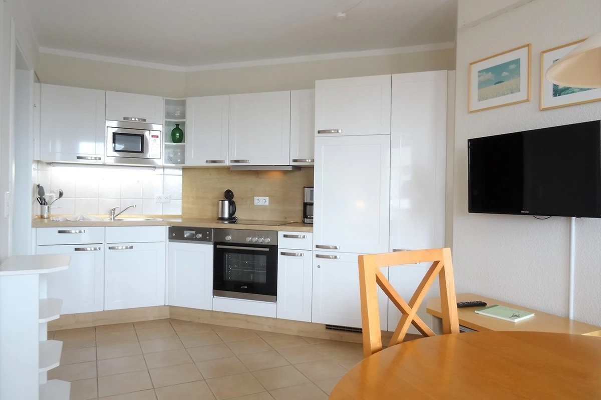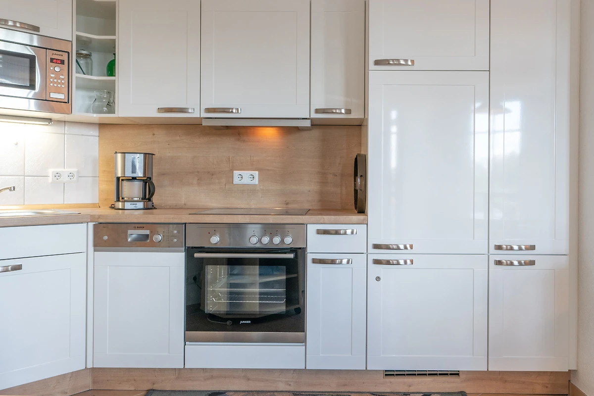 Die Ferienwohnung verfügt über kostenfreies WLAN und die Erstausstattung an Bettwäsche ist inklusive. Das Schlafzimmer mit Verdunklung verfügt über ein Doppelbett, im Wohnzimmer befindet sich zusätzlich eine Doppelschlafcouch. Darüber hinaus verfügt die Ferienwohnung über ein Bad mit Dusche sowie ein separates WC. Die voll ausgestattete, offene Küche mit Backofen, Mikrowelle, Geschirrspüler, Kaffeemaschine und Toaster lässt keine Wünsche offen. Drei Fernseher inkl. 3 Sky-Sender runden die Einrichtung ab.
