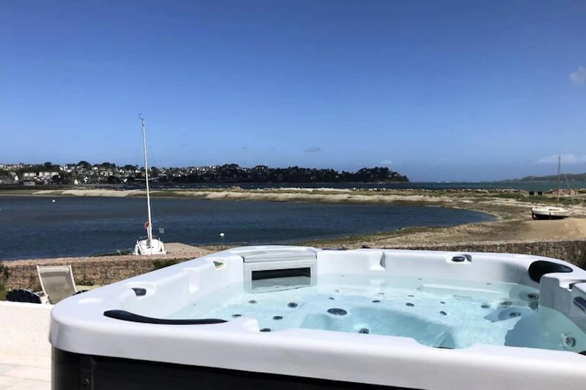 PERROS GUIREC, Vermietung eines außergewöhnlichen Hauses für 6 Personen mit Spa und Sauna. die privilegierte Lage dieser Villa am Wasser mit ihrem privaten und sicheren Zugang zu Lenn, ihrem atemberaubenden 180°-Panoramablick auf das Meer über die Bucht von Perros-Guirec. Der Wanderweg, der entlang des Anwesens verläuft, ermöglicht es Ihnen, zu Fuß die nahe gelegenen Strände sowie die malerischen Landschaften von Granite Rose, den Hafen von Perros-Guirec und seine örtlichen Geschäfte zu entdecken. Tanken Sie neue Energie