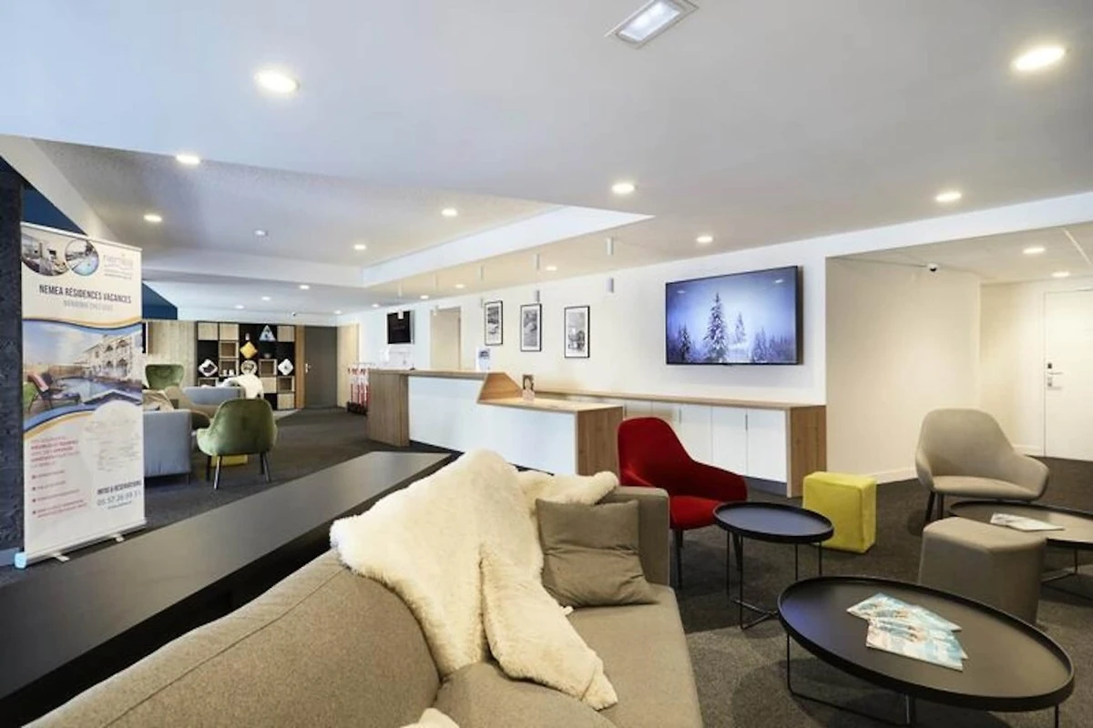 Am Eingang zum lebhaften Skiort Les Deux Alpes, an der quirligen Avenue de la Muzelle, bietet die Néméa Le Hameau**** Residence einen außergewöhnlichen alpinen Rückzugsort. Dank ihrer perfekten Lage erreichen Sie von hier aus in wenigen Schritten den Skilift Vallée Blanche, die Skischule und die Touristeninformation und haben somit bequemen Zugang zu allen Annehmlichkeiten des Ortes. Ob Sie aufregende Schneeabenteuer oder einen erholsamen Urlaub suchen – diese Lage vereint Komfort und Charme inmitten der majestätischen Gipfel der Isère-Alpen. \n\nIm Inneren der Residenz erwartet Sie eine Reihe luxuriöser Einrichtungen, die Ihren Aufenthalt zu etwas ganz Besonderem machen. Beginnen Sie Ihren Tag mit einem erfrischenden Bad im Innenpool mit Gegenstromanlage oder entspannen Sie nach einem Tag auf der Piste im Whirlpool, in der Sauna und im Dampfbad. Fitnessbegeisterte werden das hauseigene Fitnessstudio zu schätzen wissen, und ein reichhaltiges Frühstück stimmt Sie optimal auf einen aktiven Tag ein. Das Studio, ideal für zwei Gäste, bietet einen gemütlichen Wohnbereich mit Schlafsofa, eine gut ausgestattete Küchenzeile und einen privaten Balkon oder eine Terrasse, um das alpine Ambiente zu genießen. Bettwäsche, Handtücher und WLAN sind vorhanden, zusätzliche Services wie Raclette-Grillverleih und Babyausstattung sind auf Anfrage erhältlich. Les Deux Alpes ist bekannt als dynamischer und sportlicher Skiort auf 1.650 Metern Höhe. Mit 220 Pistenkilometern und Europas größtem Gletscherskigebiet verspricht er ganzjährig Skifahren auf Naturschnee. Abseits der Pisten pulsiert der Ort vor Energie und bietet lebhafte Après-Ski-Angebote, internationale Veranstaltungen und ein Nachtleben, das die Stimmung auch nach Sonnenuntergang anhält. Ob Sie durch unberührten Pulverschnee carven oder das quirlige Dorf erkunden – diese Unterkunft ist Ihr Tor zu unvergesslichen alpinen Abenteuern.