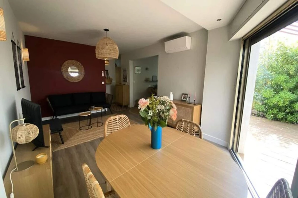 Der 100 m² große, liebevoll gestaltete Garten ist ein echtes Highlight: Er bietet ein Wasserspiel, natürlichen Schatten und viel Platz zum Entspannen oder Essen unter der elektrischen Markise. Mit einer privaten Garage, WLAN und hochwertigen Annehmlichkeiten wie einem Weber-Elektrogrill und einer Nespresso-Maschine bietet diese Unterkunft alles für einen unbeschwerten Urlaub.