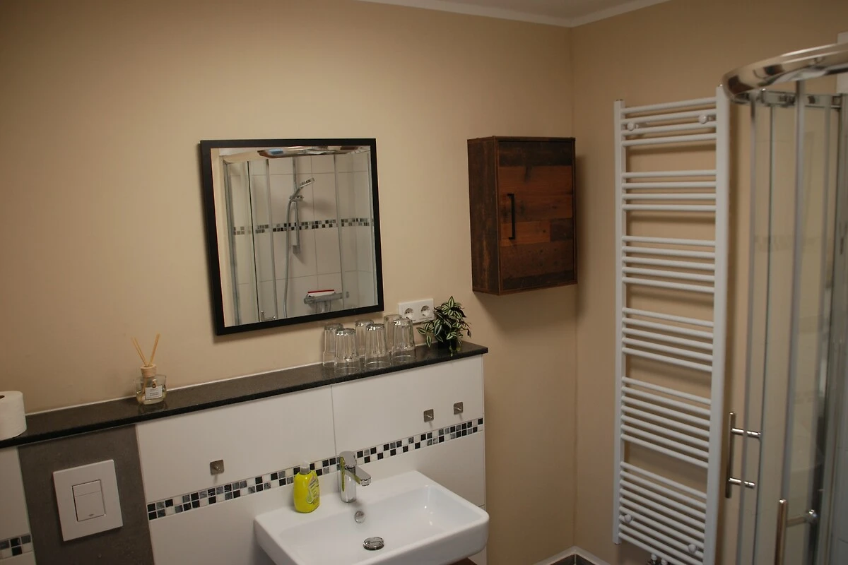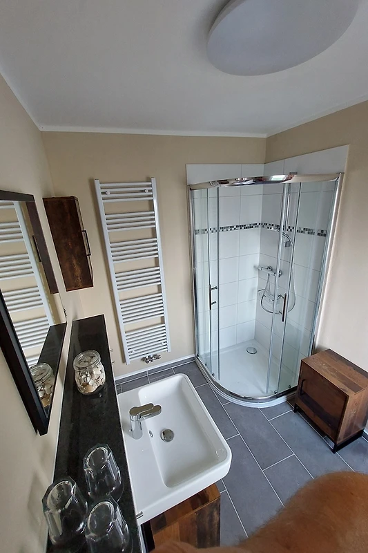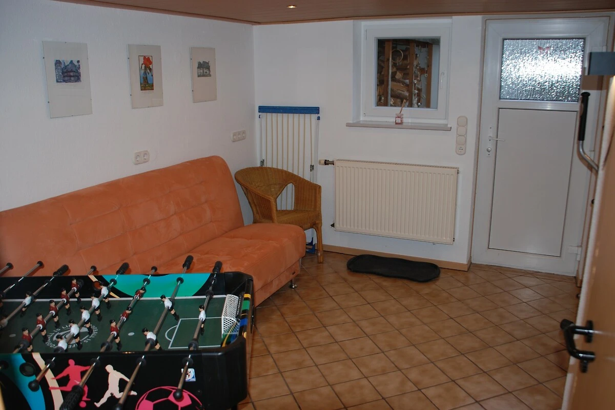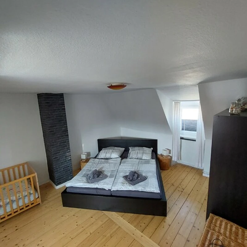 Die voll ausgestattete Küchenzeile lässt keine Wünsche offen: Hier finden Sie einen Geschirrspüler, eine Mikrowelle, einen Wasserkocher, eine Kaffeemaschine und alles, was Sie zum Kochen benötigen. Ein Kinderbett steht für die kleinsten Gäste bereit. Für Unterhaltung sorgen ein Fernseher und kostenfreies WLAN. Das Haus ist ausschließlich für Nichtraucher geeignet und bietet einen eigenen Parkplatz direkt am Haus. Auch Handwerker und Monteure finden hier eine komfortable Unterkunft.