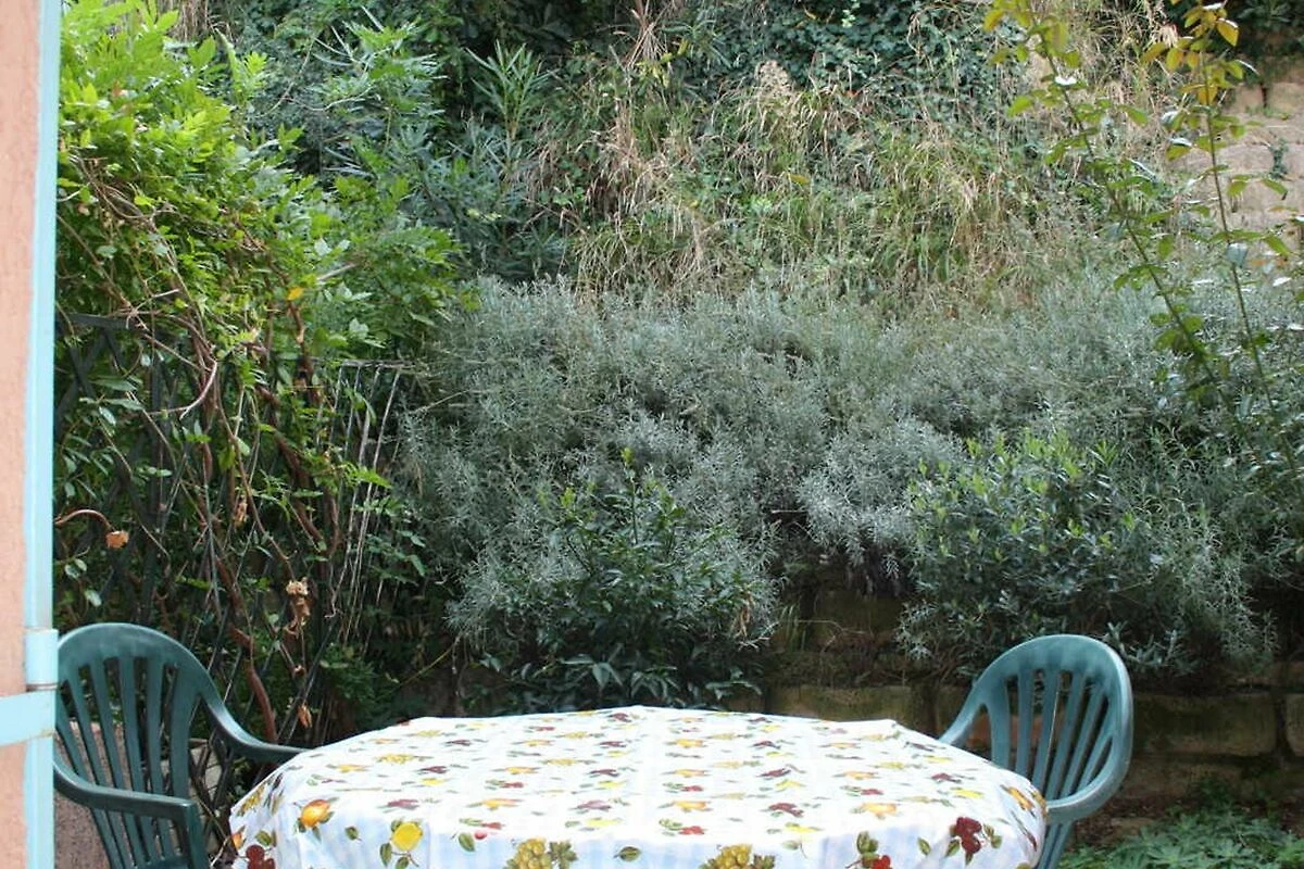 Es gibt zwei Terrassen: Eine kleine hinter dem Haus, die an die Küche angrenzt, und eine grössere Terrasse vor dem Haus mit einen wunderschönen Blick auf Grimaud.