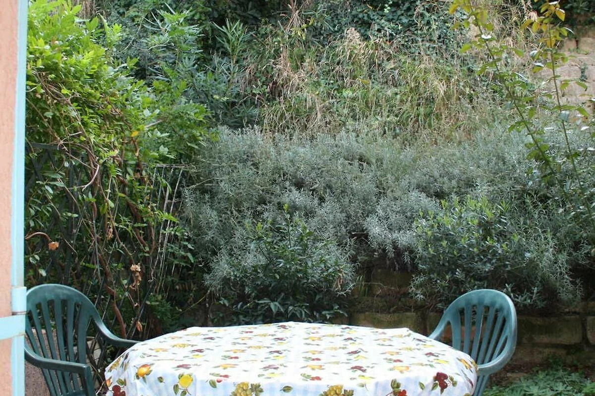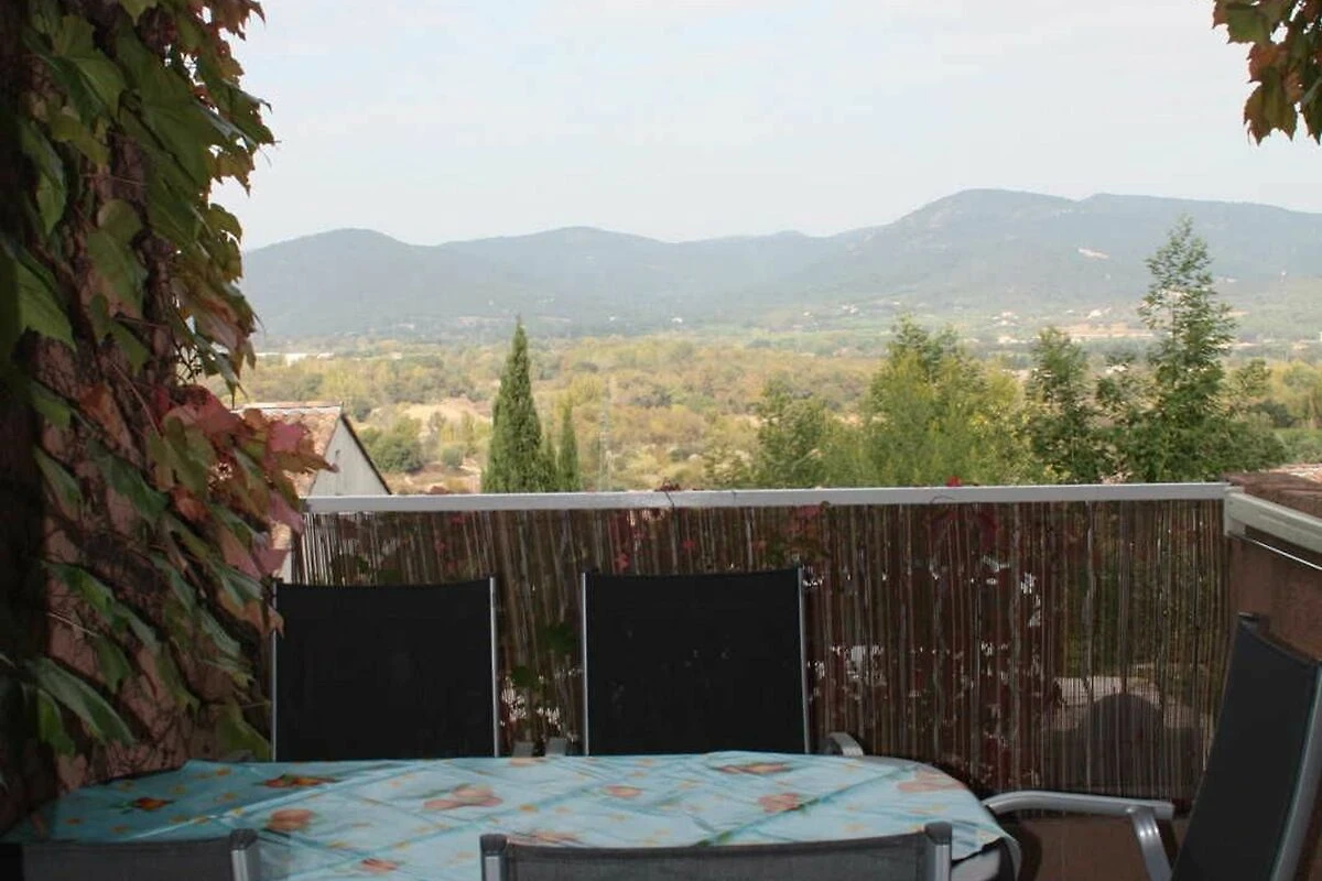 Es gibt zwei Terrassen: Eine kleine hinter dem Haus, die and die Küche angrenzt, und eine grössere Terrasse vor dem Haus mit einen wunderschönen Blick auf Grimaud.