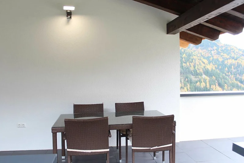 Weiters verfügt sie über einen südseitigen Sonnenbalkon mit Sitzbereich und einer Terrasse, welche nur von den Gästen dieser Wohnung genützt wird.