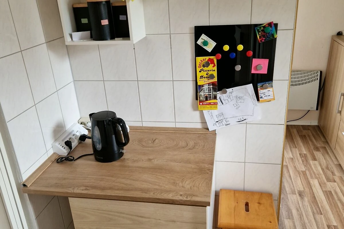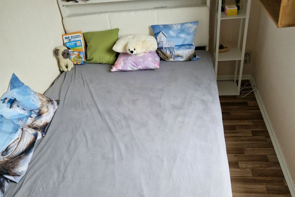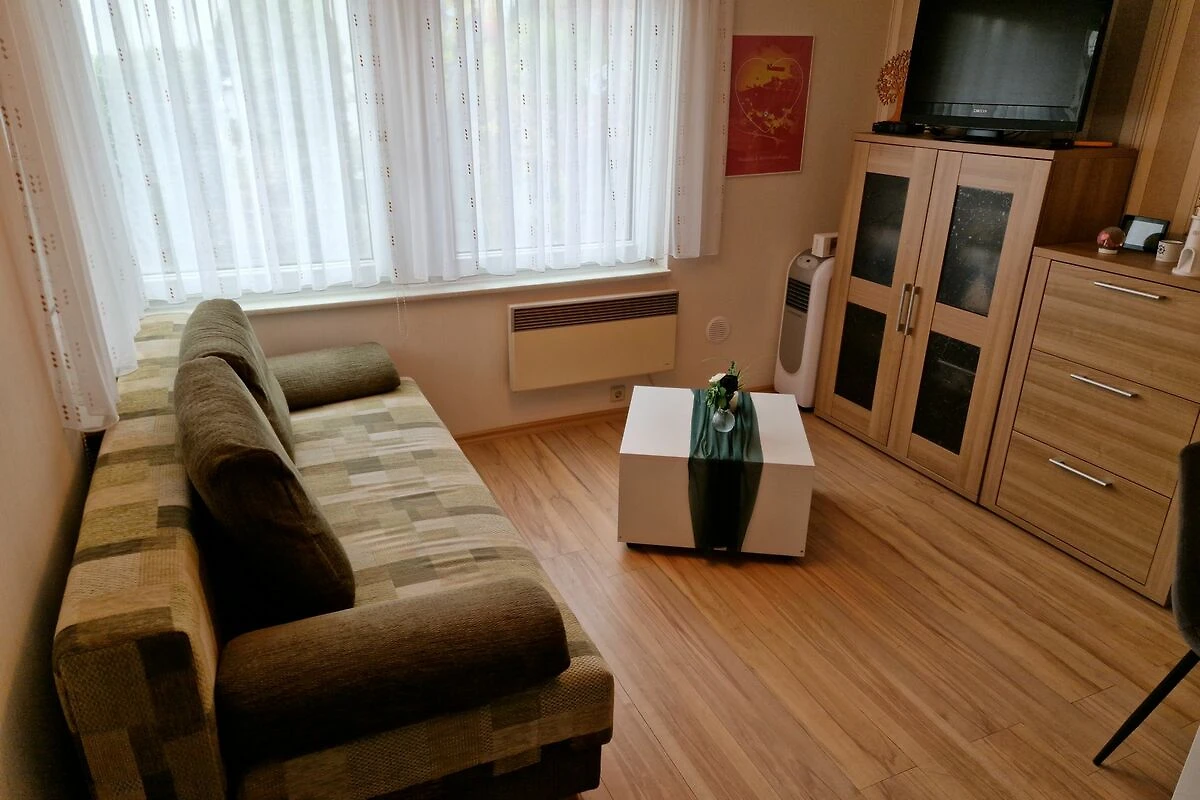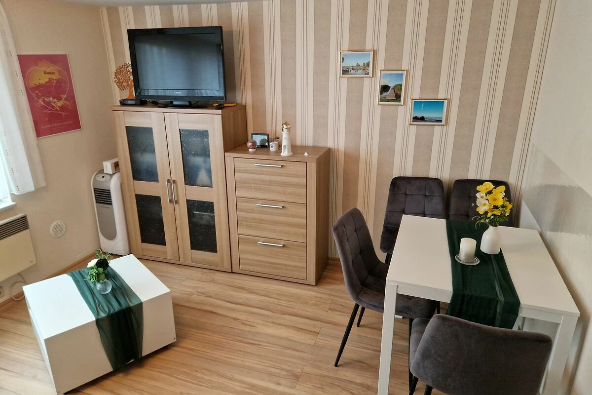 Im Schlafzimmer erwartet Sie ein komfortables Doppelbett, während im Wohnzimmer eine bequeme Schlafcouch für zwei weitere Gäste bereitsteht. Die Essecke bietet Platz für vier Personen und lädt zu gemeinsamen Mahlzeiten ein.