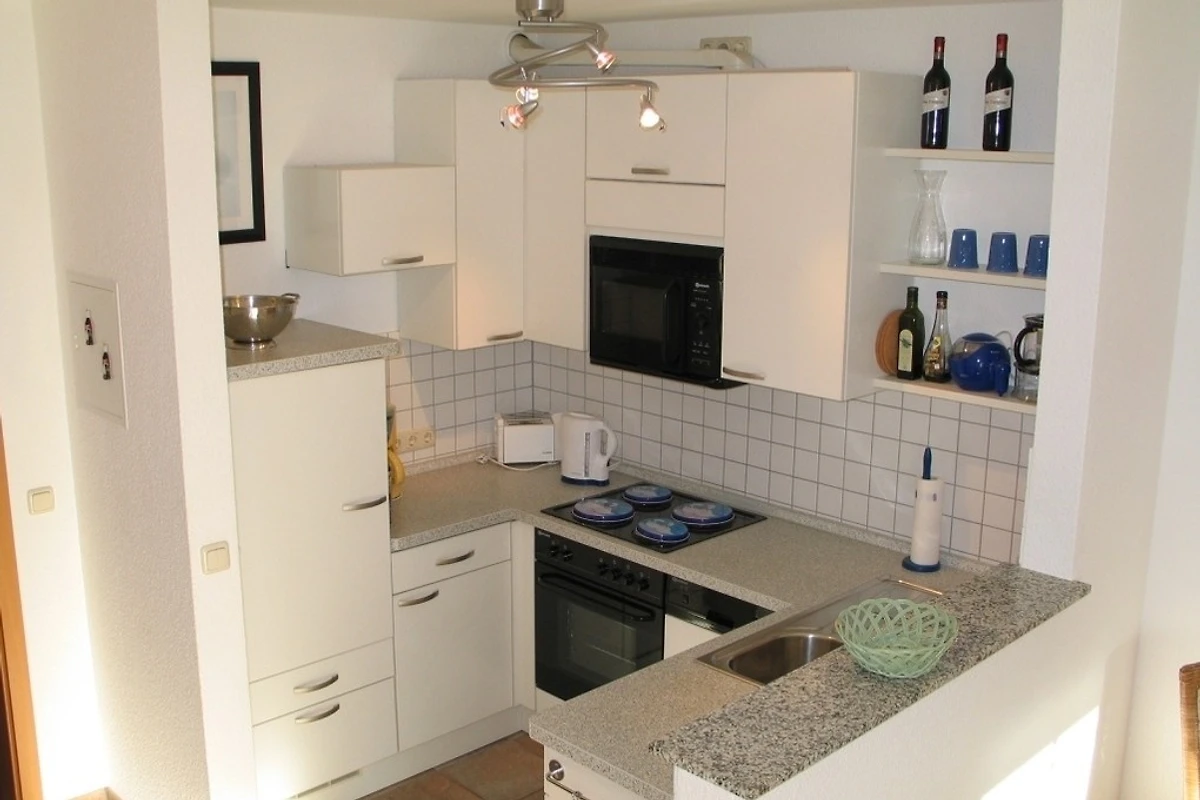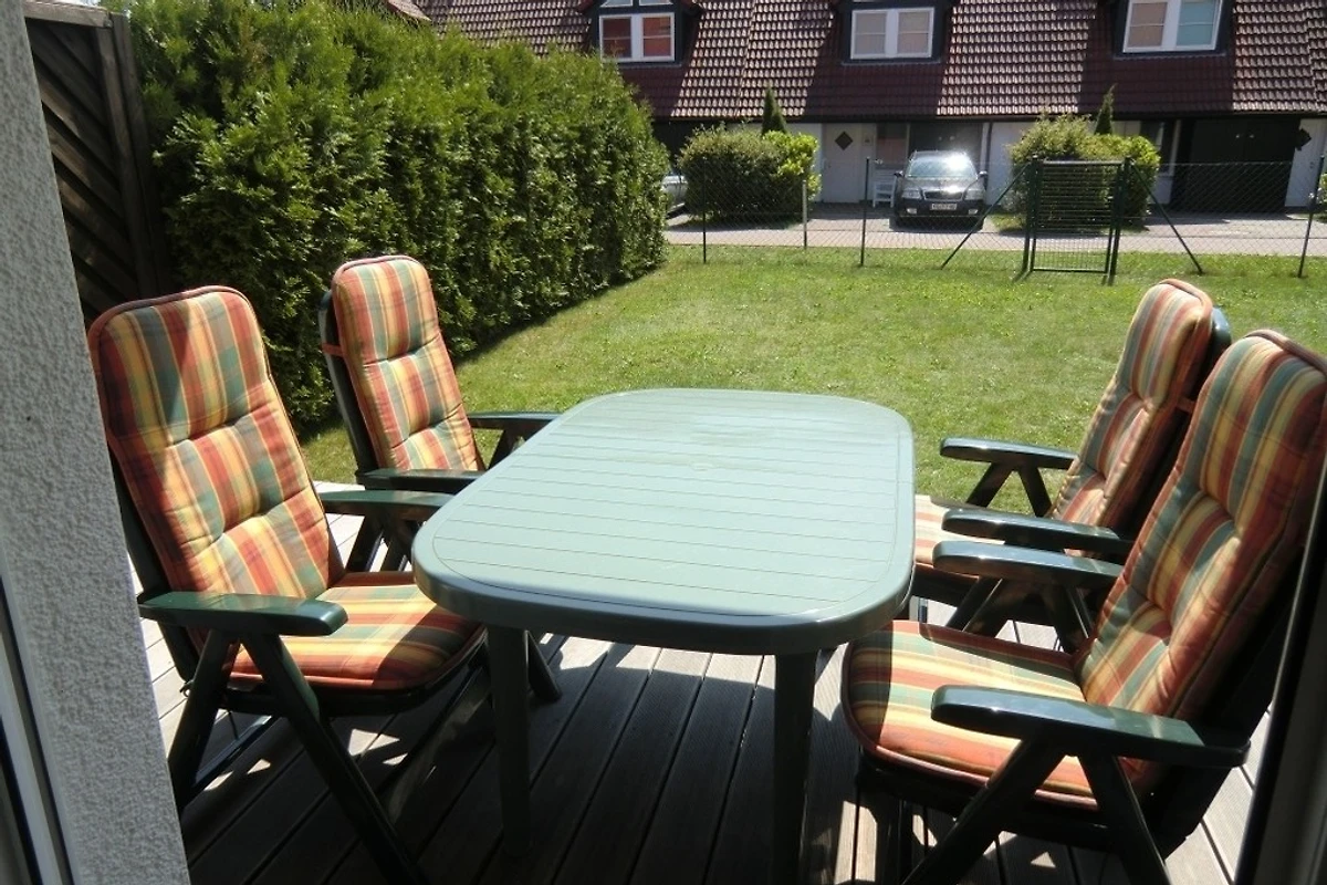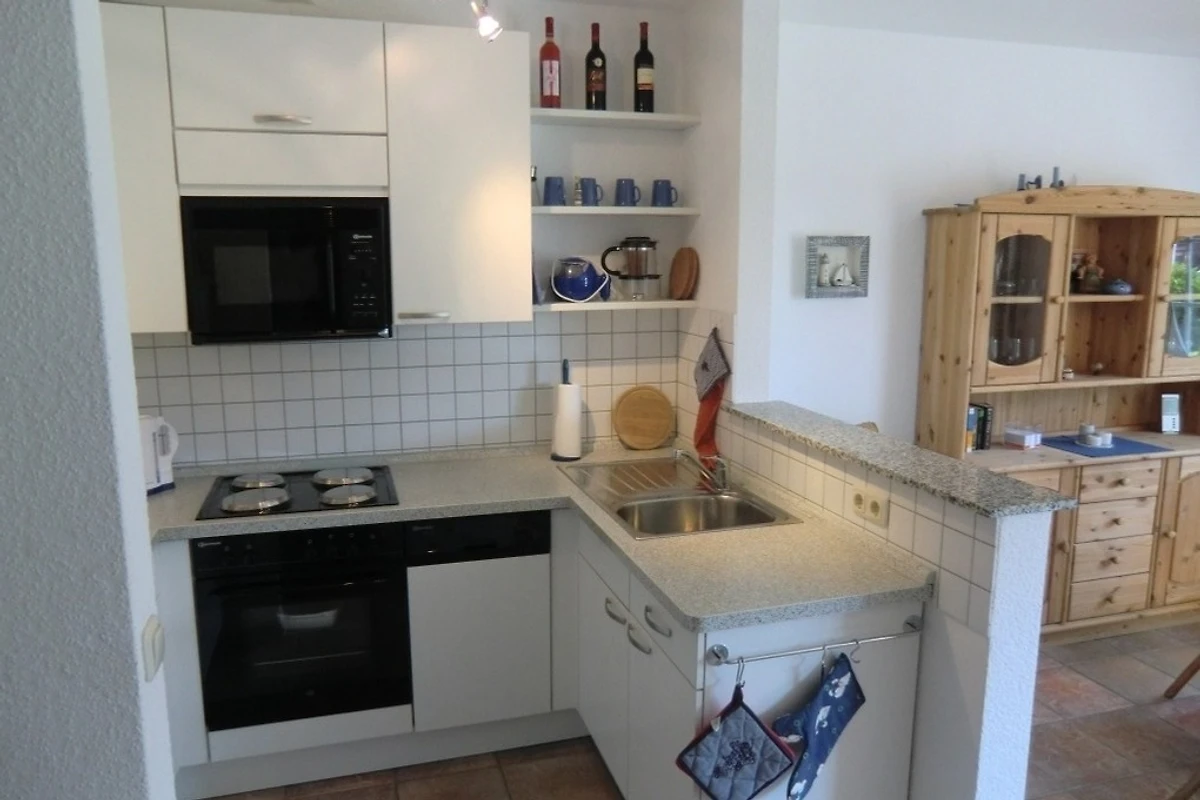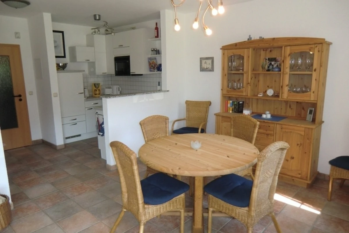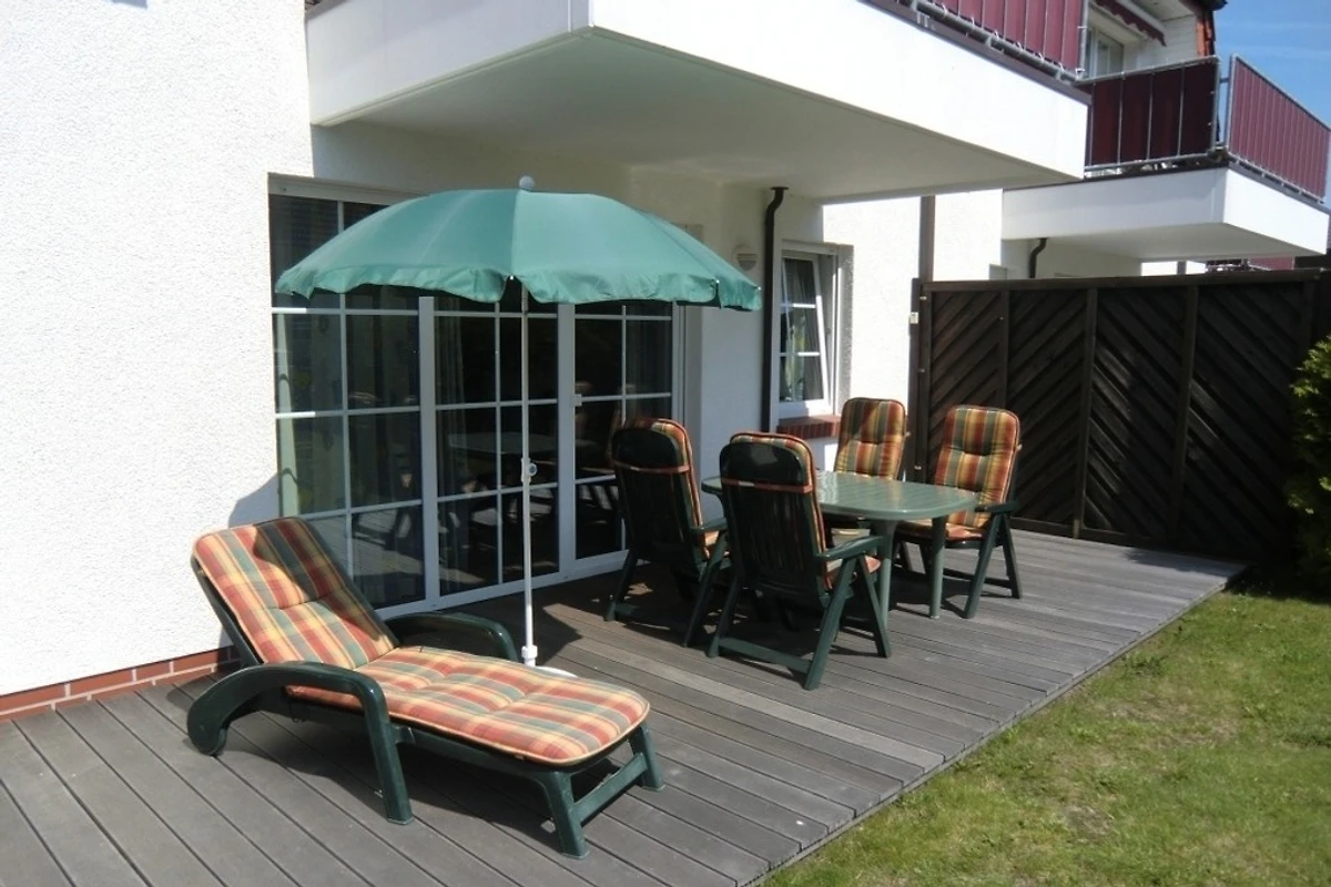 Schöne Parterre-Ferienwohnung mit 57m², 1 Wohnzimmer, 2 Schlafzimmer, 1 Bad mit Dusche & WC, 1 Gäste WC, Südterrasse und eigenem Stellplatz. Ob Erholung oder Aktivurlaub, die Ferienwohnung liegt in ruhiger, zentraler Lage von Zingst und ist im Sommer wie im Winter ein Ort der Endspannung. Von der Südterrasse mit Garten geniessen Sie die Sonne des Ostseeheilbades Zingst. Die Wohnung ist grosszügig geschnitten und liebevoll eingerichtet. Die Küche verfügt über eine Ausstattung für 4 Personen, Geschirrspülmaschine, Kochfeld, Backofen, Kühlschrank mit Gefrierfach, Kaffeemaschine, und vieles mehr. Auf der Südterasse stehen 1 Tisch, 4 Stühle und eine Gartenliege mit Auflagen für Sie bereit. Vor dem Haus befinden sich ein PKW-Stellplatz und ein Fahrradhaus. Mitbenutzung von Waschmaschine/Trockner gegen Gebühr. Freies W-LAN