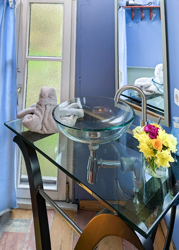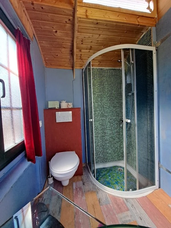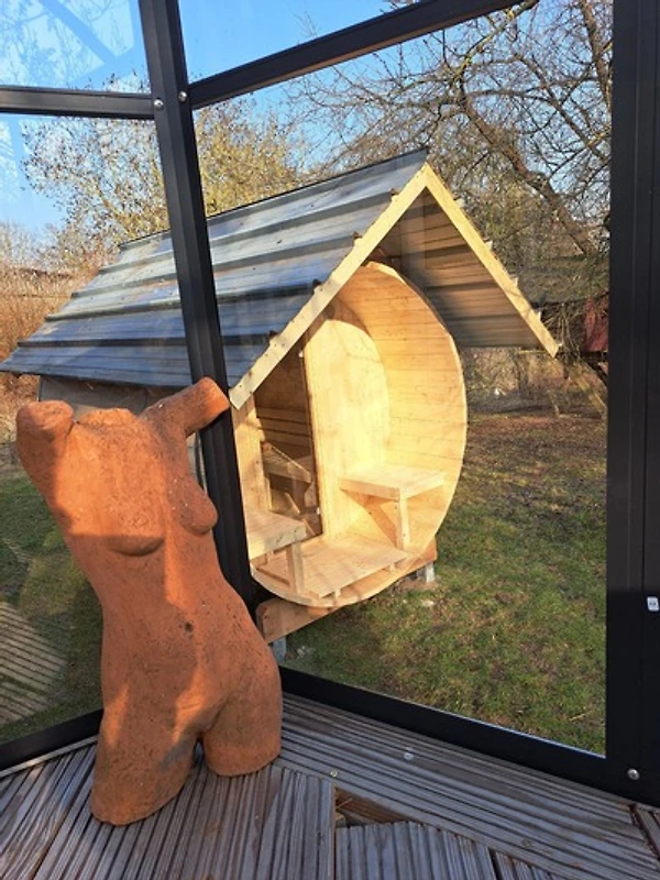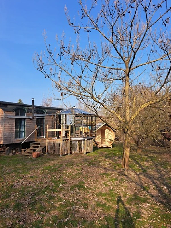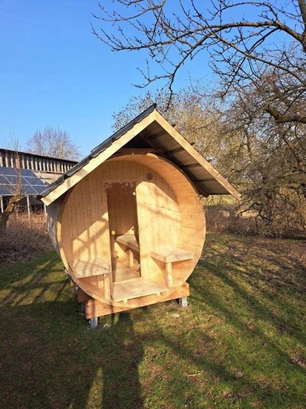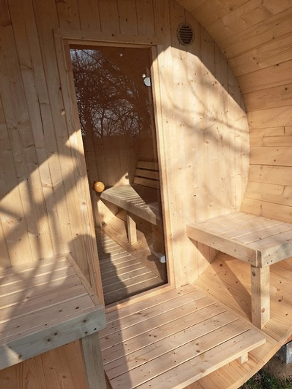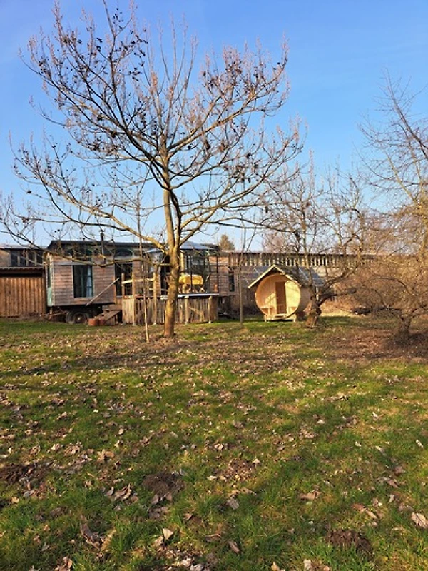 Private Schwitzkammer: Direkt an das Tiny House angeschlossen, wartet – Überraschung! – eure private Sauna. Zieht euch aus, schwitzt den Grossstadt-Stress raus. Denn hier stört euch wirklich niemand, evtl. blickt ein Hahn um die Ecke oder die Lerche von nebenan.