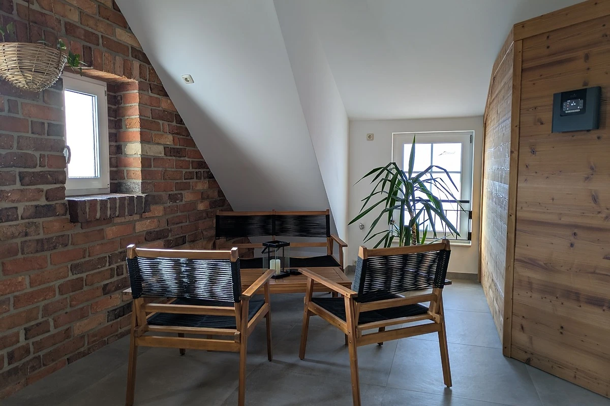 Unsere drei Nester sind über das gemeinsame Treppenhaus miteinander kombinierbar. Es ermöglicht den Zugang zur Sauna und der Ostereierwerkstatt (Dieser Bereich ist jedoch nicht barrierefrei und somit auch nicht für Rollstuhlfahrer geeignet).