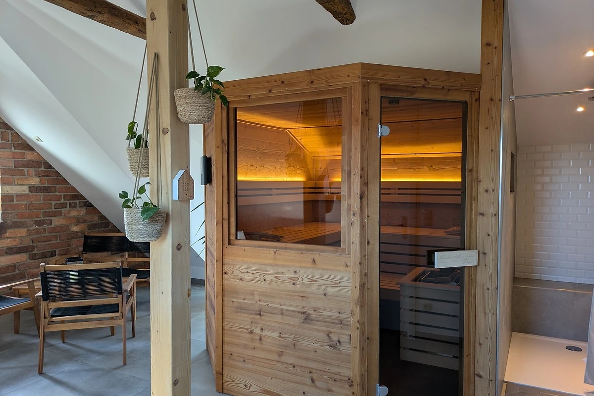Unsere drei Nester sind über das gemeinsame Treppenhaus miteinander kombinierbar. Es ermöglicht den Zugang zur Sauna und der Ostereierwerkstatt.