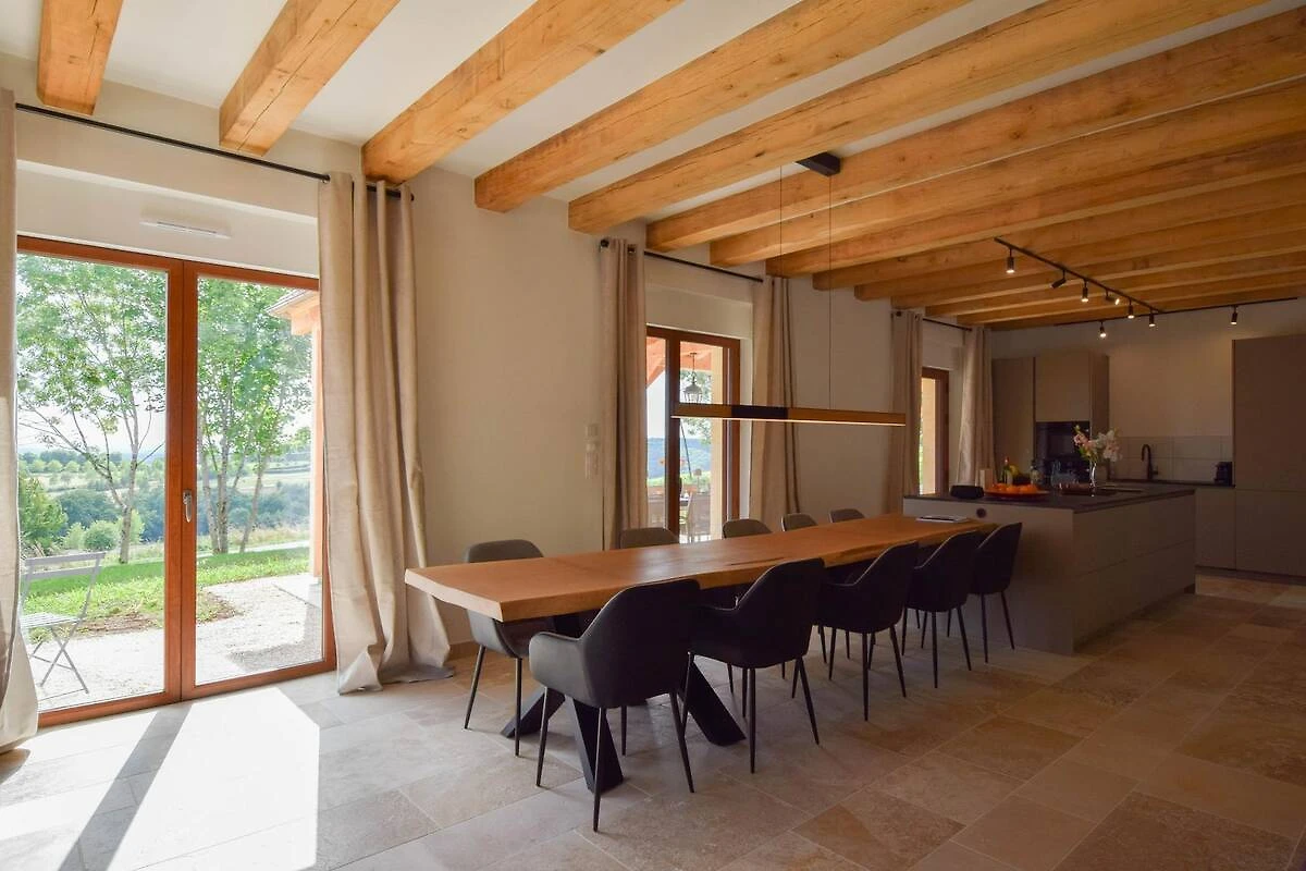 Willkommen in La Maison Wallon – einem brandneuen Ferienhaus (Baujahr 2025), das bis zu 10 Gästen außergewöhnlichen Komfort bietet. Mit einem privaten, beheizten Pool, Klimaanlage und atemberaubendem Panoramablick über das Anwesen Domaine d’Essendiéras ist diese Residenz ein idyllischer Rückzugsort im Herzen der Dordogne.
