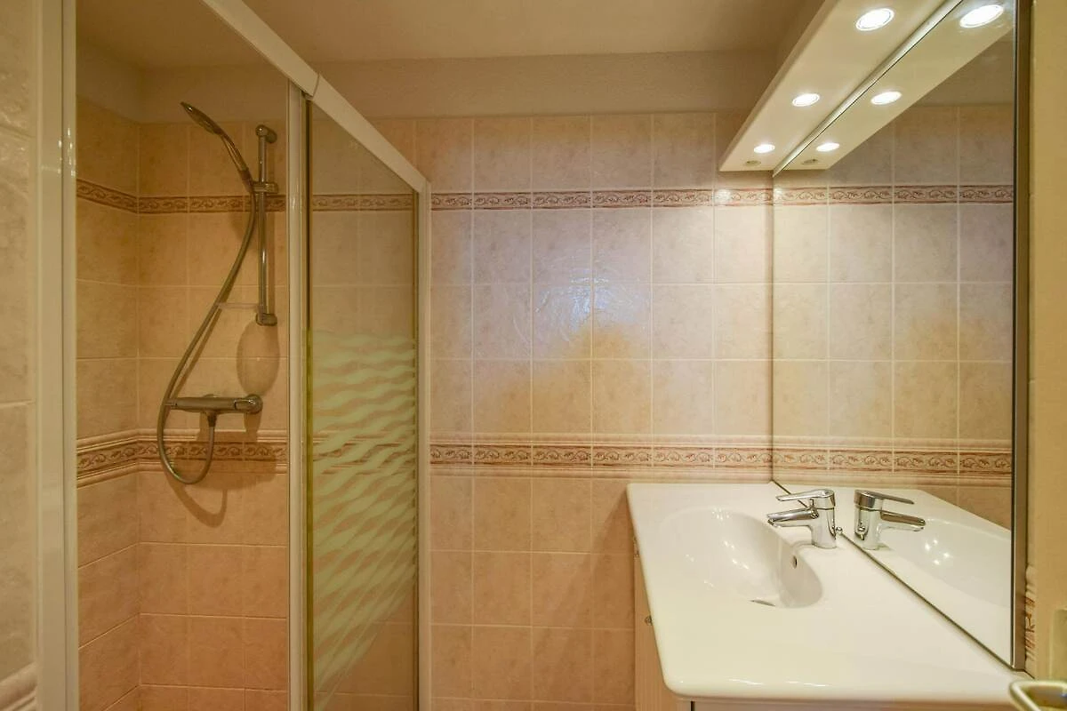 Das Haus ist hell und praktisch eingerichtet und perfekt für Familien oder kleine Gruppen. Im Erdgeschoss befinden sich zwei Schlafzimmer mit je zwei Einzelbetten und ein Badezimmer mit Dusche, Waschbecken und WC. Im Obergeschoss erwartet Sie ein gemütliches Wohn-Esszimmer mit Flachbildfernseher neben einer voll ausgestatteten Küche mit Espressomaschine, Backofen, Mikrowelle, Geschirrspüler, Kühl-/Gefrierkombination und allen notwendigen Kochutensilien. Ein zweites Schlafzimmer mit eigenem Bad bietet zusätzliche Privatsphäre. Annehmlichkeiten wie Internetzugang, Waschmaschine, Wäschetrockner, Kinderbett, Hochstuhl, Bügeleisen/-brett und privater Parkplatz sorgen für einen unkomplizierten und sorgenfreien Aufenthalt.