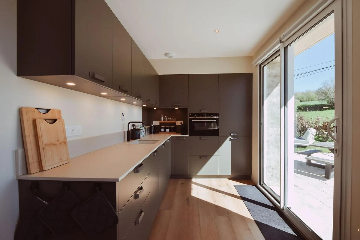 Im Erdgeschoss befindet sich ein helles Wohn-Esszimmer mit Zugang zu einer überdachten Terrasse – der perfekte Ort für Mahlzeiten im Freien oder um das Panorama zu genießen. Die voll ausgestattete Küche ist direkt mit Garten und Pool verbunden und macht das Leben im Sommer so unkompliziert. Das Haus verfügt über drei Doppelzimmer: eines im Obergeschoss mit eigenem Duschbad und zwei im Erdgeschoss, die sich ein zweites modernes Badezimmer teilen. Hochwertige Annehmlichkeiten wie schnelles Glasfaserinternet, HDTV, Kamin, Espressomaschine, Geschirrspüler, Waschmaschine und Trockner sorgen für einen komfortablen und angenehmen Aufenthalt.