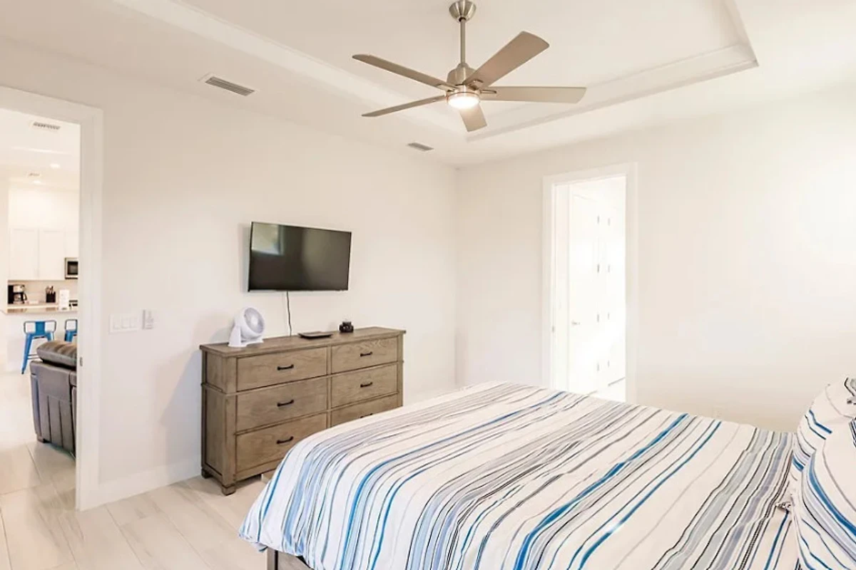 Wenn Sie einmal auf Tour gehen möchten, erreichen Sie Strände, Restaurants, Cafés und Einkaufsmöglichkeiten in kurzer Zeit. Egal, ob Sie einen entspannten Strandtag, einen kleinen Stadtbummel oder Naturerlebnisse suchen – Cape Coral und die umliegende Region bieten Ihnen alles, was einen perfekten Urlaub ausmacht. Der Sands Park nahe der Villa eignet sich perfekt für Freizeitaktivitäten wie Pickle Ball, Tennis, Basketball, Golf putting green und Cornhole und bietet BBQ Stationen und einen Spielplatz.