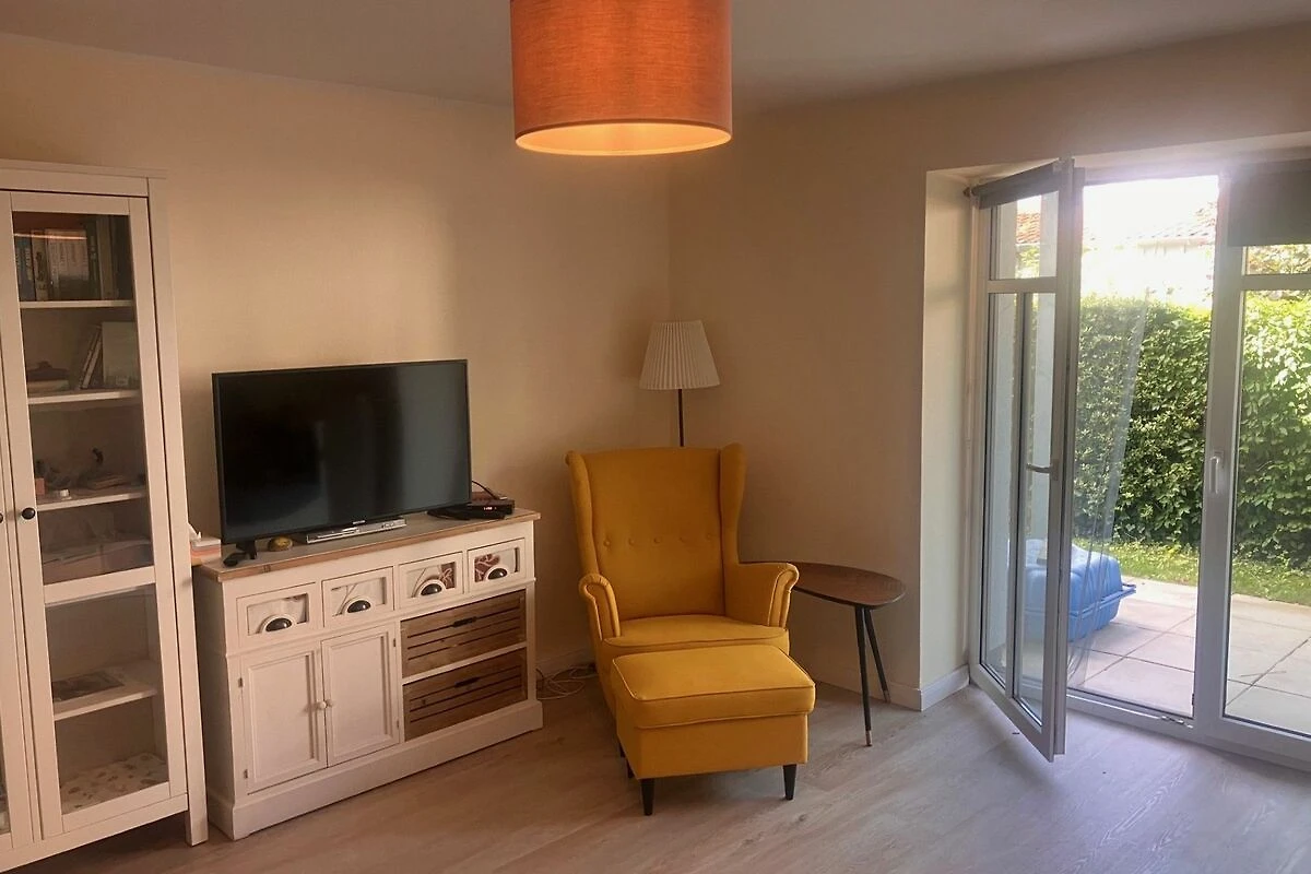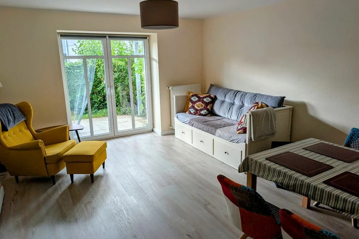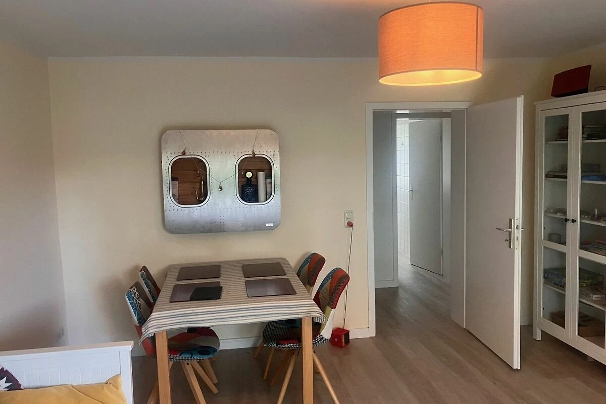 Die Adlon Ferienwohnung befindet sich in einer ruhigen Wohnanlage im Erdgeschoss und bietet neben der Terrasse auch einen kleinen Garten. Ideal für Paare oder Familien mit kleinen Kindern. Der Wohnzimmer verfügt über einen Essbereich, eine Schlafcouch (zum Doppelbett ausziehbar) und eine gemütliche Leseecke. Internet TV, Blue Ray Player und W-LAN stehen Ihnen als unser Gast selbstverständlich zur Verfügung. Das Schlafzimmer mit Boxspring Doppelbett kann als Twin Zimmer oder klassisches Doppelzimmer konfiguriert werden. Zwei Stapelbetten zur Aufbettung bieten Komfort, speziell für Kinder. Die vollwertig ausgestattete Küche bietet neben Herd und Ofen auch einen Geschirrspüler und eine Waschmaschine. Das Bad mit WC und Dusche bietet einen Haartrockner. Zur Wohnung gehört ein Schuppen, in dem neben einem Beach Bike auch ein praktischer Strand-Trolley, Sonnenschirm und Strandwindschutz zu finden sind. Für die Terrasse stehen Gartenmöbel zur Verfügung.