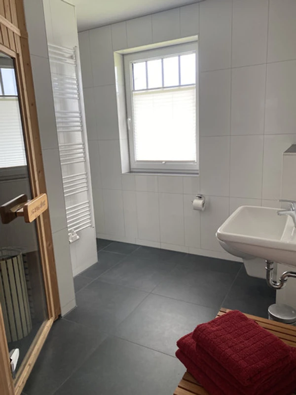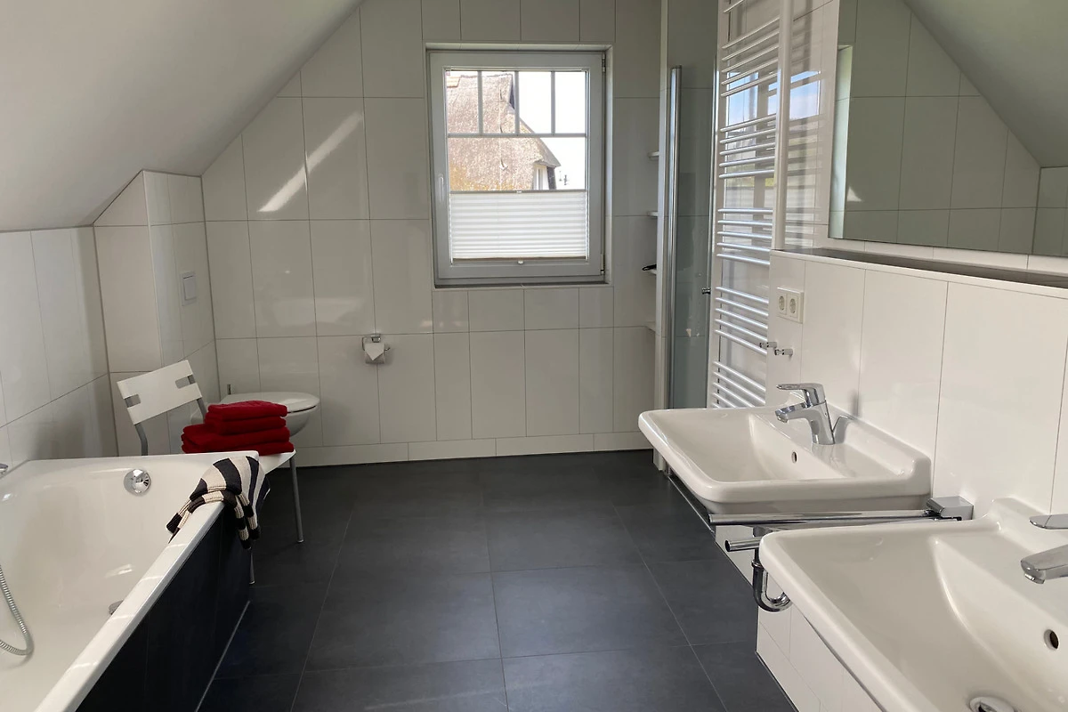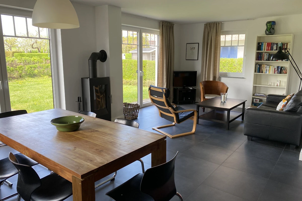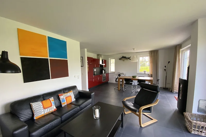 Zwei grosszügige Badezimmer, eins mit Sauna und eins mit Badewanne und begehbarer Dusche sind vorhanden. Der gemütliche Wohn,- Essbereich mit modern, komplett ausgestatteter Küche und Kaminofen lädt zum gemeinsamen Kochen, zum Spieleabend, Lesen oder Fernsehen ein. Sauna und Kaminofen verlängern den Spass die Ostsee auch in der Vor,- und Nachsaison zu besuchen.