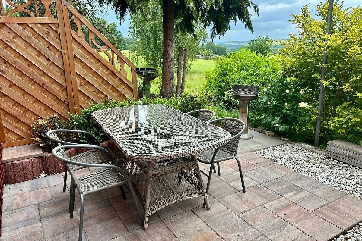 Unsere Familie heisst Sie beim Gästeliebling Vogtland 2023 + 2024 in liebevoll eingerichteten Ferienwohnungen mitten im wunderschönen Vogtland willkommen. FeWo 9 ist eine Ferienwohnung über 2 Etagen, mit eigenem Eingang, Terrasse mit Grill und Ess-/Sitzbereich sowie schöner Ausssicht ins Tal.Diese FeWo hat im EG eine grosse Küche mit Essecke, Eingangs-Flur sowie Wohnzimmer. Im 1. OG einen Flur mit grossem Schrank, 1 Tageslicht-Badezimmer und 2 Schlafzimmer.1. Schlafzimmer: 1 grosses Doppelbett2. Schlafzimmer: 2 Einzel-BoxspringbettenIm Wohnzimmer haben wir zusätzlich 1 Schlafsofa (120 x 200 cm), welches aufgebettet werden kann.Wir stellen Ihnen je Person 1 x Bettwäsche und 2 Handtücher.Pool, Sonnenterrasse, Spielplatz, Parkplatz, WLAN, Grillplatz-Nutzung sind inklusive. Bei uns können Sie in ruhiger Lage entspannen und die Natur auf Spaziergängen und Fahrradtouren geniessen. Für Familientreffen, gemeinsame Mahlzeiten, Geburtstagsfeiern oder ähnliche Veranstaltungen bieten wir Ihnen unsere Pumphut`s Stube an. Hier finden bis zu 24 Personen Platz.Diese berechnen wir separat mit einer einmaligen Gebühr von 50,- Euro (Reinigungs-/Nutzungsgebühr).Für die kalte Jahreszeit bieten wir Ihnen unsere Sauna an.Diese berechnen wir separat und vor Ort mit 7,50 Euro/Person.Der Plohn-Freizeitpark liegt nur ca. 1 km entfernt.Hier sind Hunde willkommen.Je Hund berechnen wir 5,- €/Nacht + 30,- € Endreinigung.