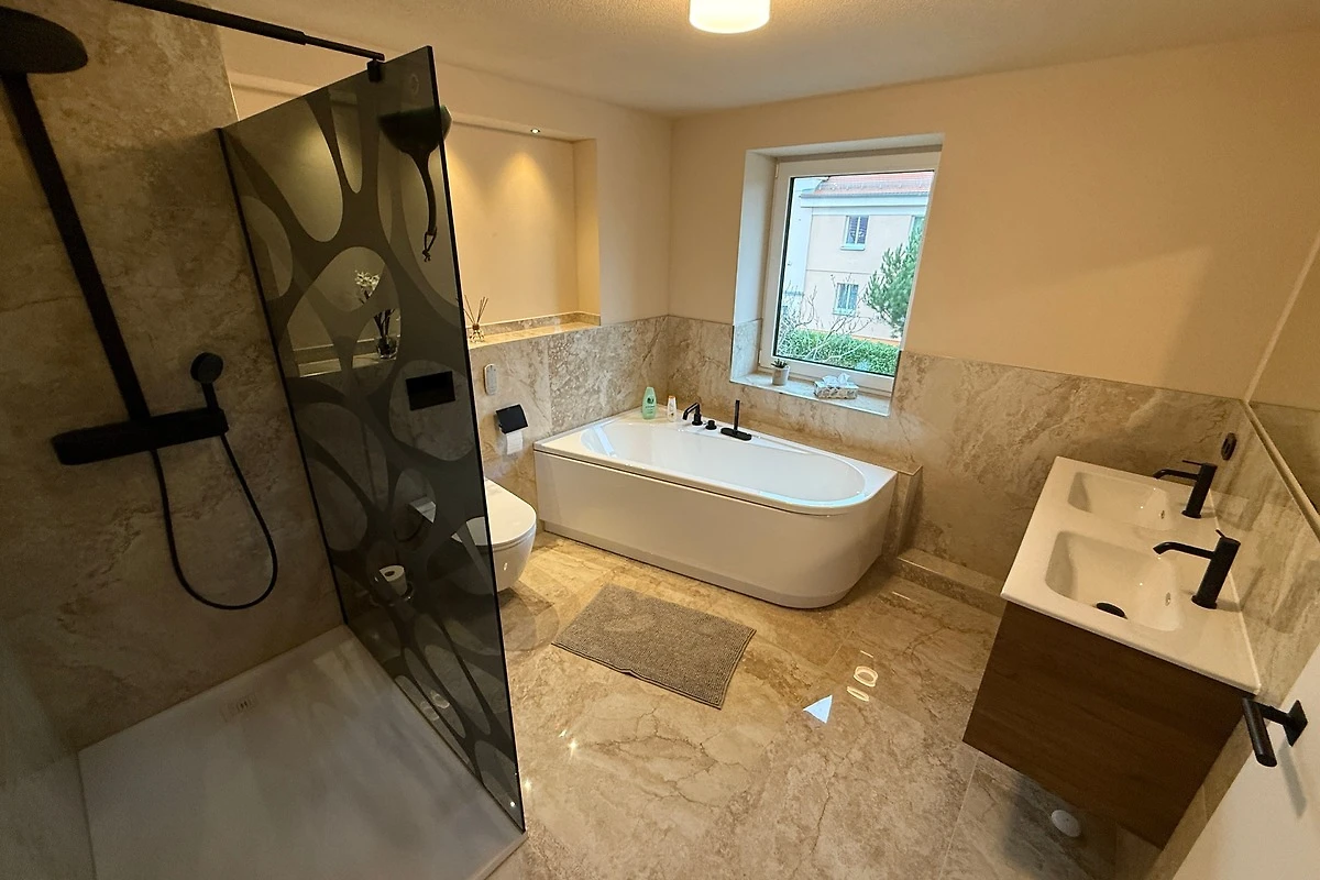Beide Zimmer bedient das geräumige Tageslichtbad/WC mit Wanne. Es ist modern eingerichtet und besticht durch seine Eleganz.