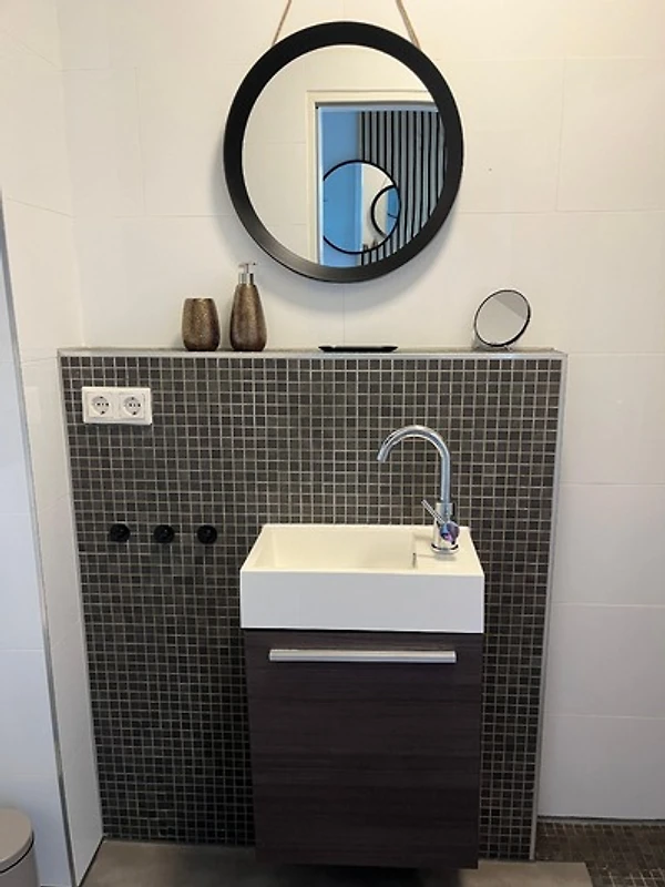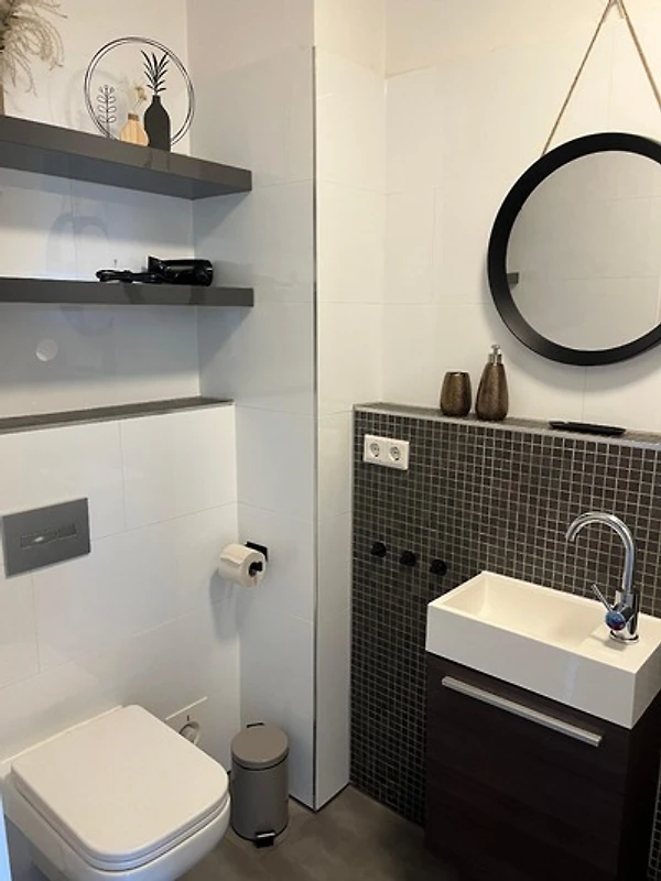 - Duschbad/WC mit Fussbodenheizung, Handtuchheizkörper, Kosmetikspiegel und Föhn