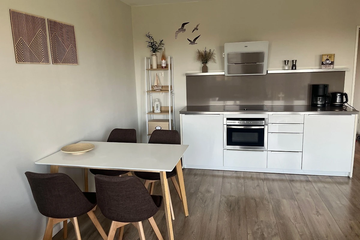 - Voll ausgestattete Küche (Kühlschrank mit Gefrierfach, Geschirrspülmaschine, Induktionsherd, Backofen, Kaffeemaschine, Wasserkocher, Mikrowelle, Toaster)