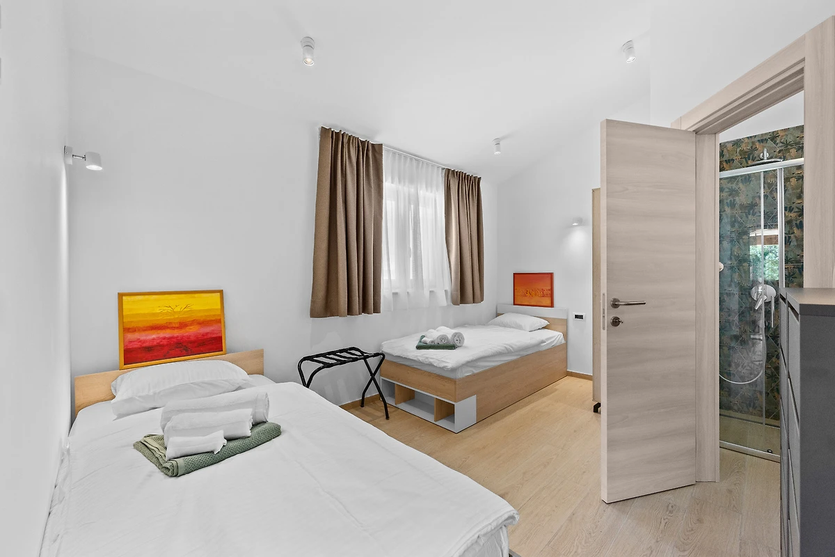 Herzlich willkommen im Ferienhaus Erholungsurlaub in Vodnjan – Ihrem perfekten Rückzugsort für bis zu 6 Gäste! Auf großzügigen 190 m² erwarten Sie drei Schlafzimmer mit bequemen Betten und vier moderne Badezimmer, die höchsten Komfort bieten. Das Haus ist ausschließlich für Nichtraucher und eignet sich auch für Langzeitaufenthalte.