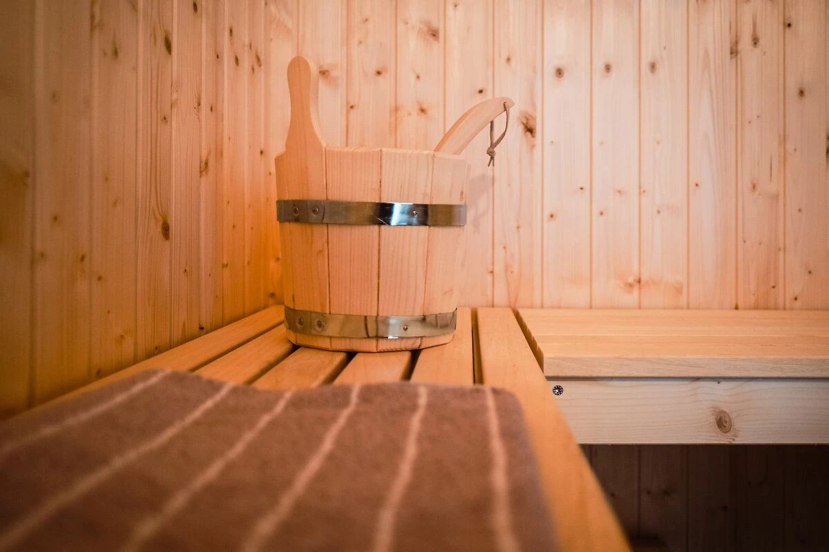 2 Schlafräume, Backofen, Bügelbrett, Essecke, Fernseher, Föhn, Geschirrspüler, Kaffee und Teekocher, Kamin oder Kachelofen im Zimmer, Küche separat, Kühlschrank, Mikrowelle, Nichtraucherzimmer, Radio, Satelliten TV, Sauna im Zimmer, Sitzgelegenheit, Terrasse am Zimmer, Toaster, Waschmaschine, Whirlpool in Zimmer/FeWo, Wireless Lan im Zimmer Sanitär: Badewanne, Badezimmer mit Fenster, Dusche, Handtuchtrockner