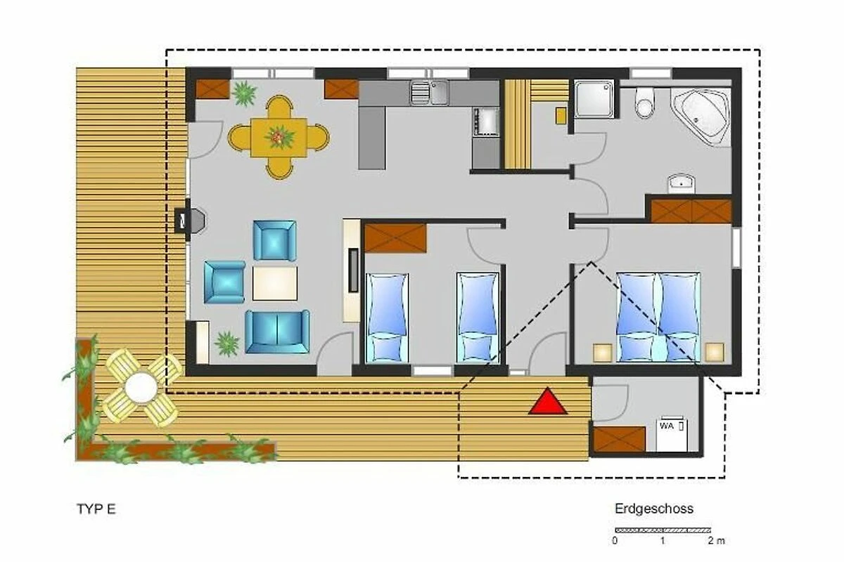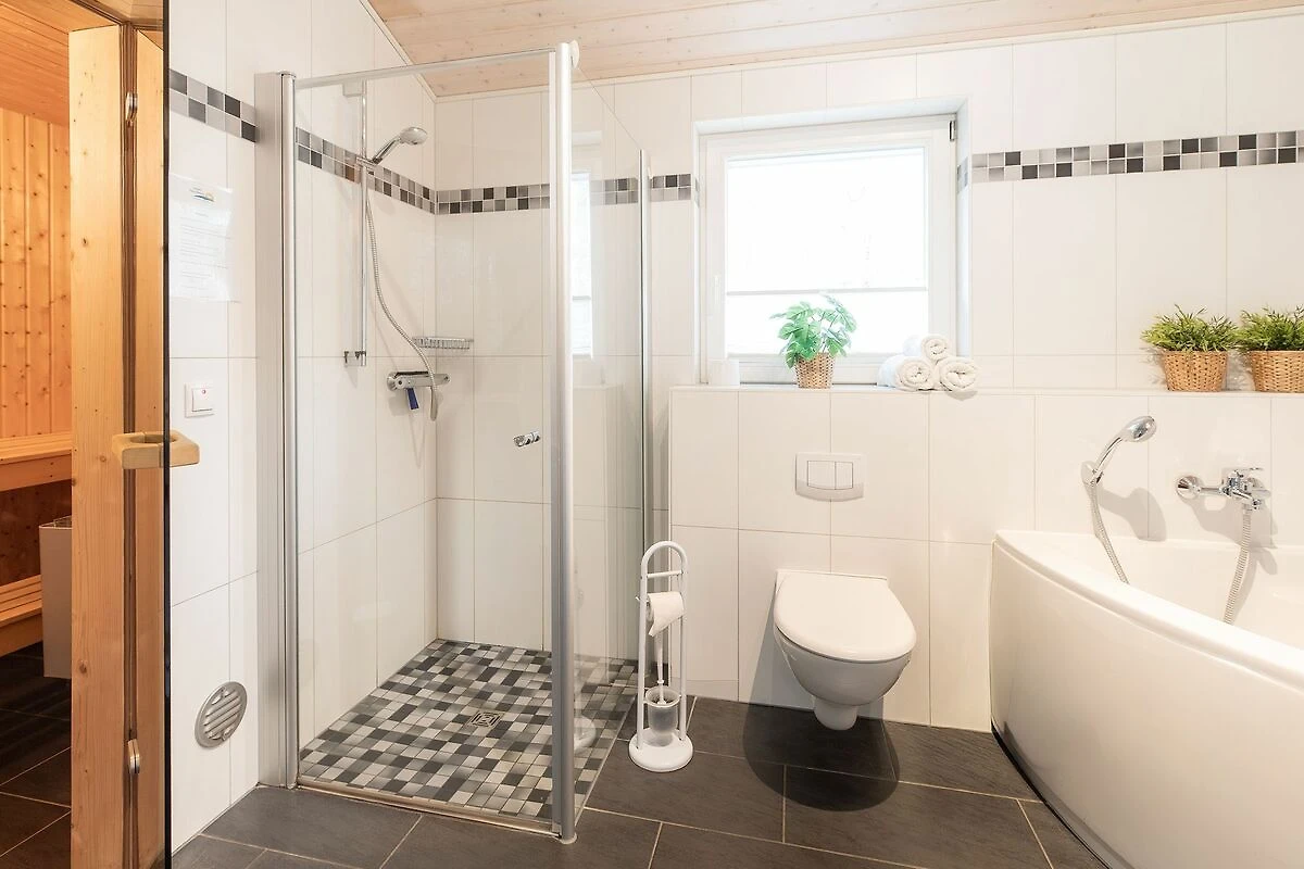 2 Schlafräume, Backofen, Doppelbett: 1, Einzelbetten: 2, Essecke, Fernseher, Geschirrspüler, Internetanschluss im Zimmer, Kaffee und Teekocher, Kaffeemaschine, Kamin oder Kachelofen im Zimmer, Kühlschrank, Mikrowelle, Nichtraucherzimmer, Satelliten TV, Sauna im Zimmer, Sitzgelegenheit, Terrasse am Zimmer, Toaster, Waschmaschine, Whirlpool in Zimmer/FeWo, Wireless Lan im Zimmer Sanitär: Badewanne, Badezimmer mit Fenster, Dusche, Handtuchtrockner