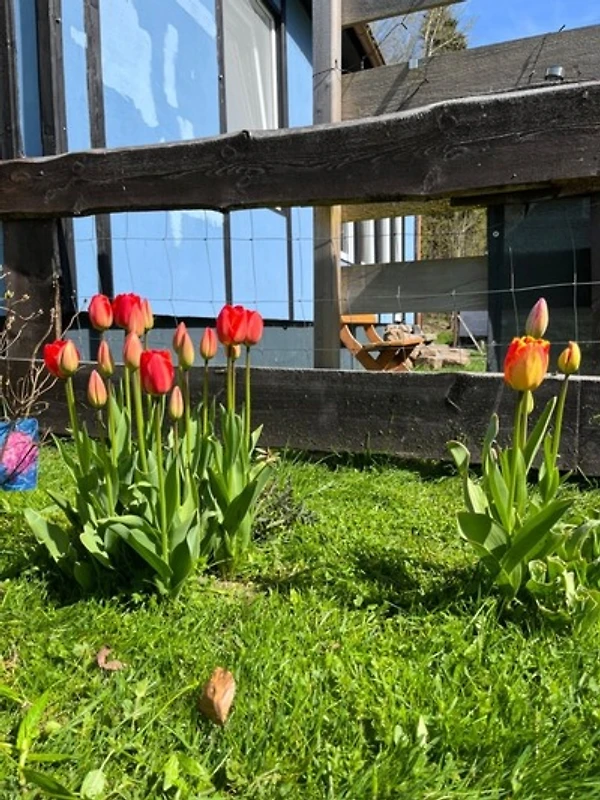 Jeder haus ist mit ein eigen eingezäunter Gartenund Terrasse (min.1mtr hoch) wo direkter kontakt mit dem Hausnachbarn nicht möglich ist. Wir verlangen das jeder respektvoll mit ein Ander umgeht, Sodas jeder ein entspannte Urlaub haben kann.