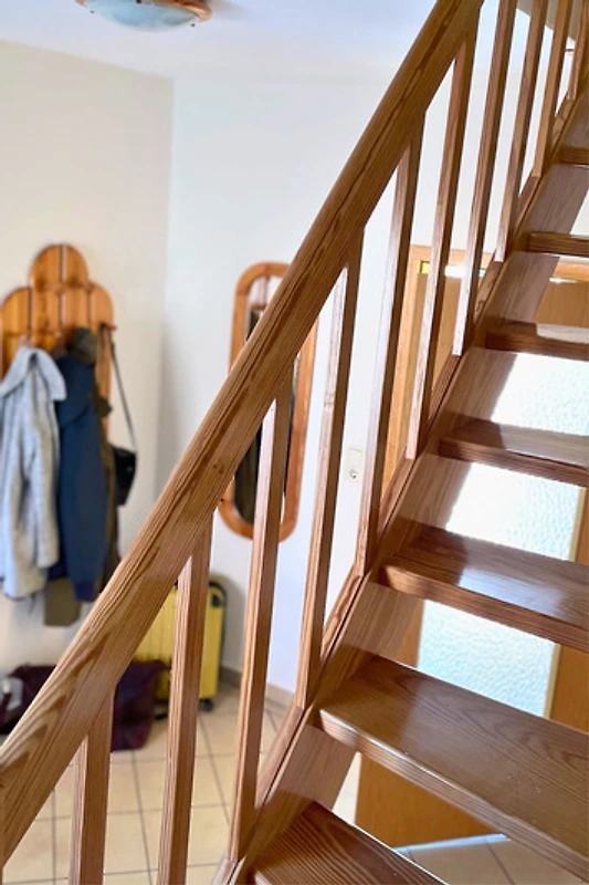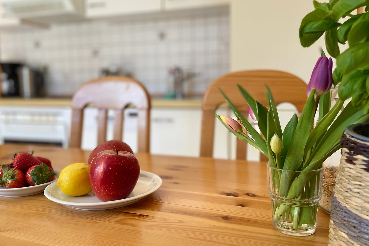Auf rund 65 m² findest du auf zwei Etagen alles, was du für deinen Urlaub brauchst. Im Erdgeschoss erwartet dich ein heller, einladender Wohnraum mit einer gut ausgestatteten Küchenzeile, einer gemütlichen Sitzecke und einem Duschbad – ideal für deinen entspannten Start in den Tag.