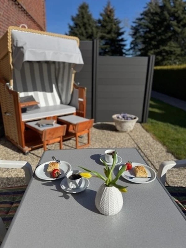 Und draussen? Da wartet deine eigene Südterrasse mit Gartenmöbeln, Strandkorb und viel Platz zum Entspannen und Sonne tanken. Auf dem Ferienhof Middeldor gibt’s noch viel mehr: Die Spielscheune, die grosse Spielwiese und eine Vielzahl an Abenteuern sorgen dafür, dass garantiert keine Langeweile aufkommt!
