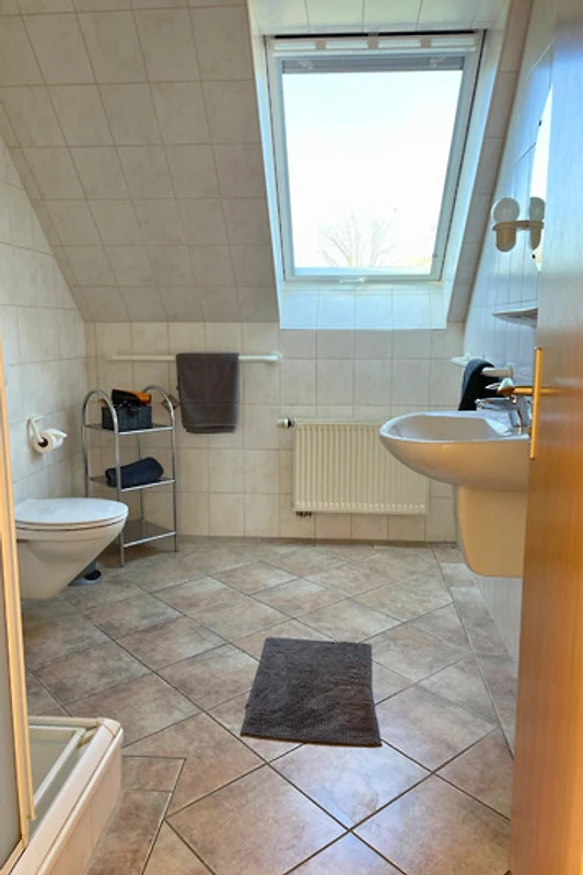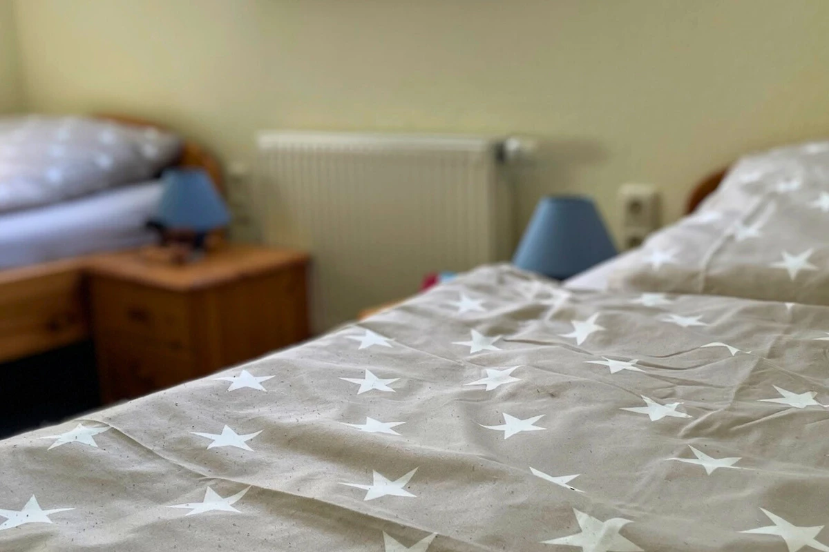 Es gibt drei Schlafzimmer: Ein grosses Schlafzimmer mit Doppelbett, sowie zwei weitere Zimmer mit je zwei Einzelbetten. Duschbad ist funktional und sorgt dafür, dass du nach einem langen Tag perfekt entspannen kannst.