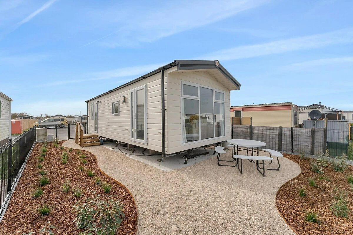 Dieses moderne Chalet in De Haan ist ein helles und einladendes Feriendomizil, ideal für bis zu vier Gäste, die den Charme der belgischen Küste komfortabel und stilvoll genießen möchten. Das Chalet ist durchdacht gestaltet und geschmackvoll eingerichtet und bietet eine entspannte Atmosphäre, in der Strandtage und gemütliche Abende nahtlos ineinander übergehen. Das Wohnzimmer lädt mit einer bequemen Sitzecke, Fernseher, Klimaanlage und Heizung zum Verweilen ein und bietet ganzjährigen Komfort. Große Fenster lassen viel Tageslicht herein und schaffen ein offenes und luftiges Ambiente. Die offene Küche geht nahtlos in den Wohnbereich über und ist komplett für unkompliziertes Kochen im Urlaub ausgestattet: Esstisch, Herd, Mikrowelle mit Gefrierfach, Kühlschrank mit Gefrierfach, Kaffeemaschine, Wasserkocher, Toaster, Kochutensilien, Geschirr, Besteck und Weingläser für entspannte gemeinsame Abendessen.