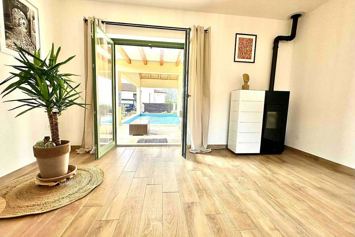 Der gepflegte Garten lädt mit schattigen Sitzplätzen und mediterranen Pflanzen zum Verweilen ein. Der einladende Swimmingpool verspricht Erfrischung und Badespaß an sonnigen Tagen. Ob Sie auf der Terrasse entspannen oder das milde Klima genießen – hier finden Sie den idealen Rückzugsort für Ihren Urlaub in Istrien. Willkommen in Ihrem Ferienparadies in Bale!