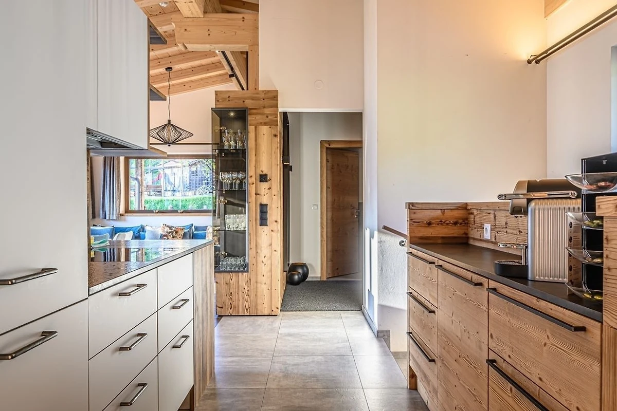 Nespresso-Maschine, Weinklimaschrank, Teebar sowie hochwertige Küchenausstattung für genussvolle Abende im Chalet.