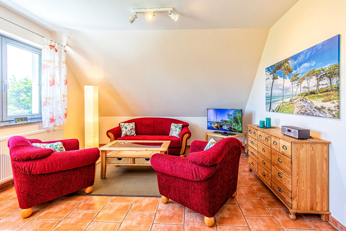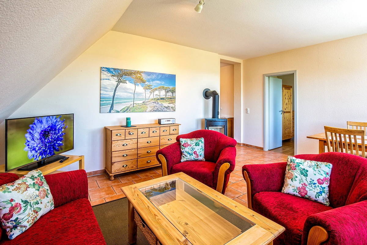 Es erwartet Sie eine modern eingerichtete Ferienwohnung für 4 Personen mit einem freien Blick auf die Darßer Wiesenlandschaft.