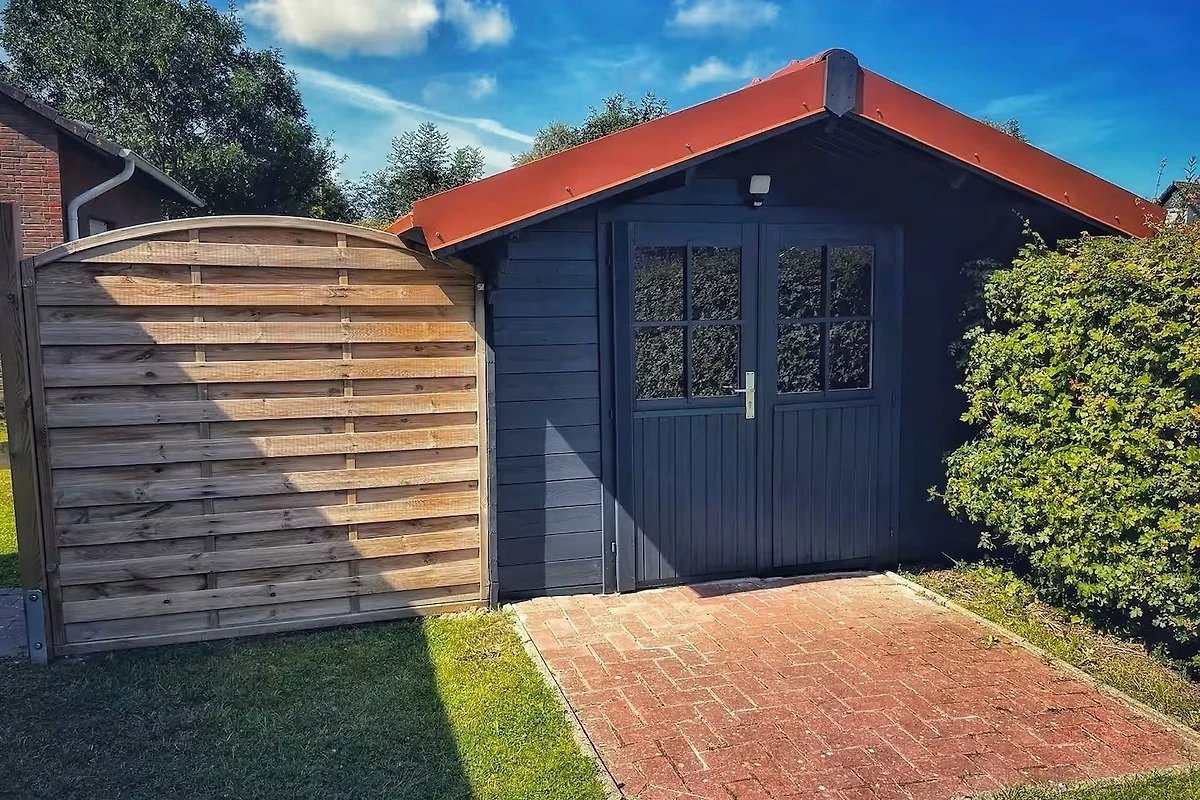 In unserem absperrbarem Gartenhaus, können Sie ihre E-Bikes gerne unterstellen und laden.