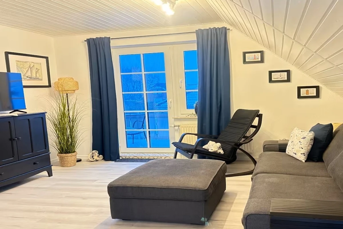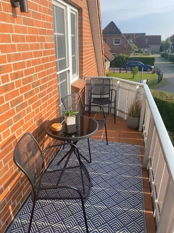 Nicht nur der maritime Stil auch der Balkon , die ruhige Lage und nicht zuletzt die Strandnähe der Obergeschoss /Wohnung lassen Urlaubsgefühle aufkommen.