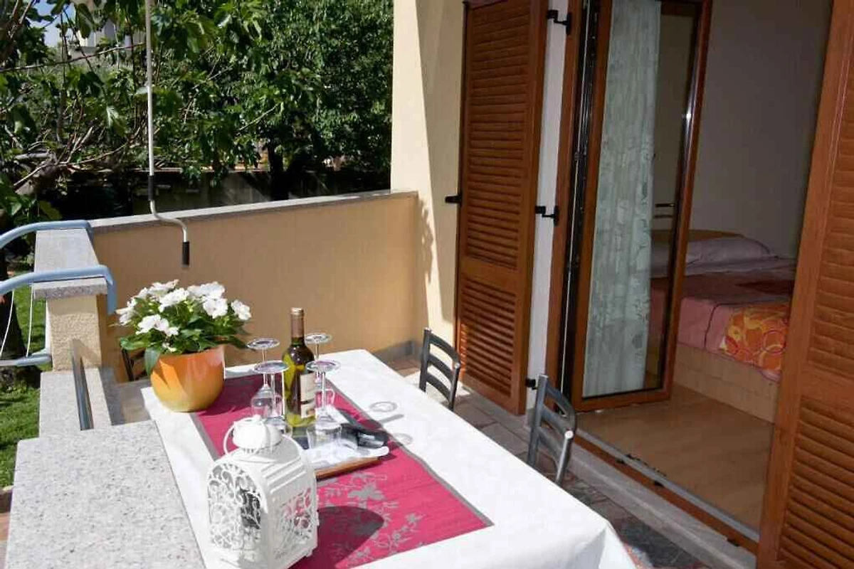 Novigrad. Die Ferienwohnung befindet sich auf einem 200 qm grossen Gartengrundstück. Der Vermieter wohnt im Haus, nutzt jedoch einen separaten Eingang. Parkplatz (für 1 Pkw) auf der Strasse vor dem Haus.