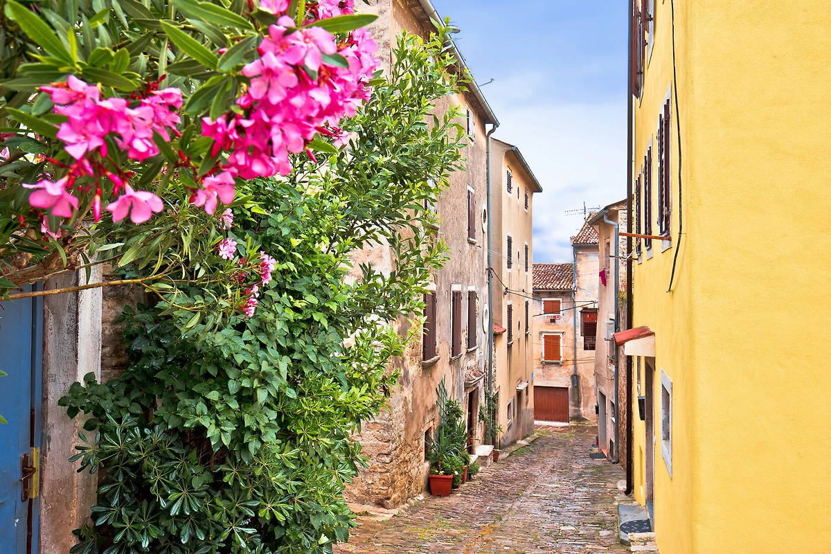 Einkauf 190 m, Restaurant 500 m, Ortszentrum 1200 m. Die nächste Haltestelle für den öffentlichen Nahverkehr ist 900 m entfernt. Flughafen in Pula 70 km. Im Sommer: Adria (Strand 300 m in Novigrad mit Kies).