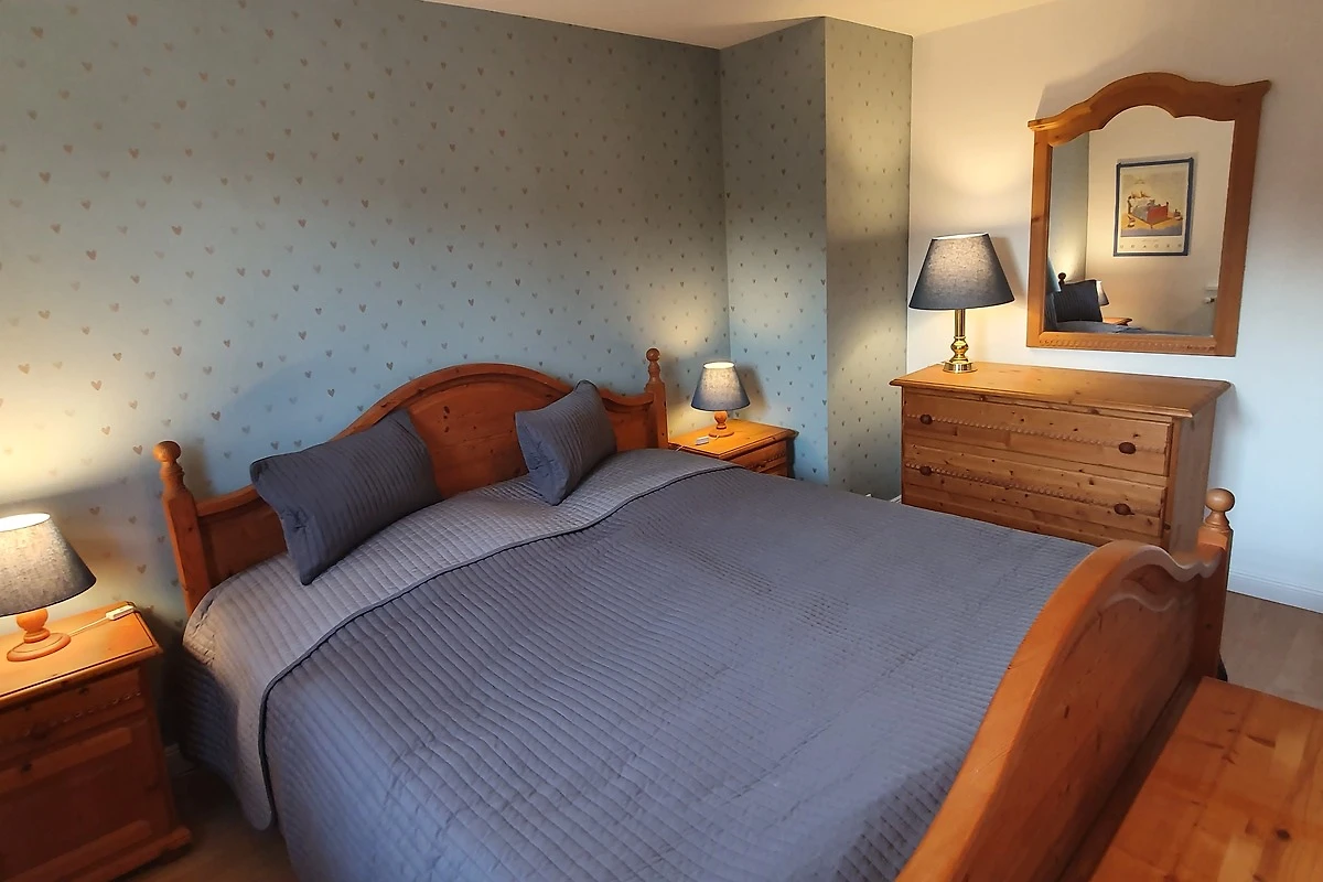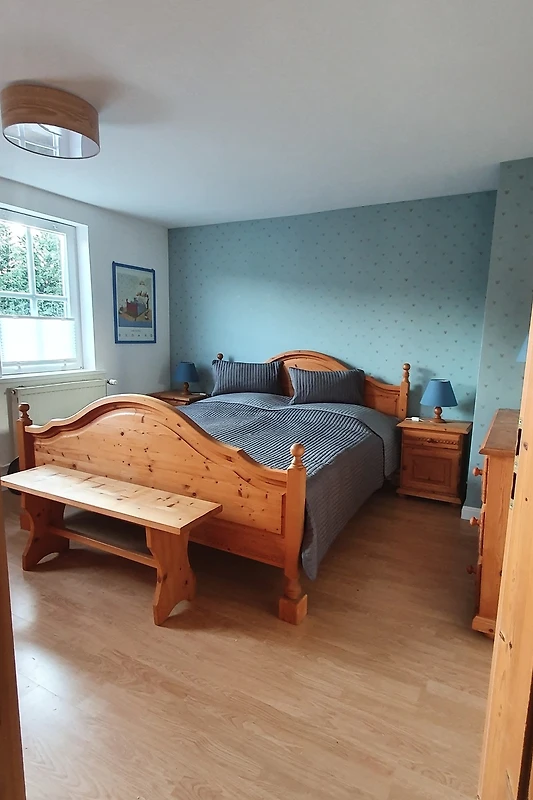 1 Schlafzimmer mit 1 Doppelbett (180 x 200 cm) großem Kleiderschrank, Kommode, Bank.