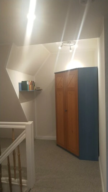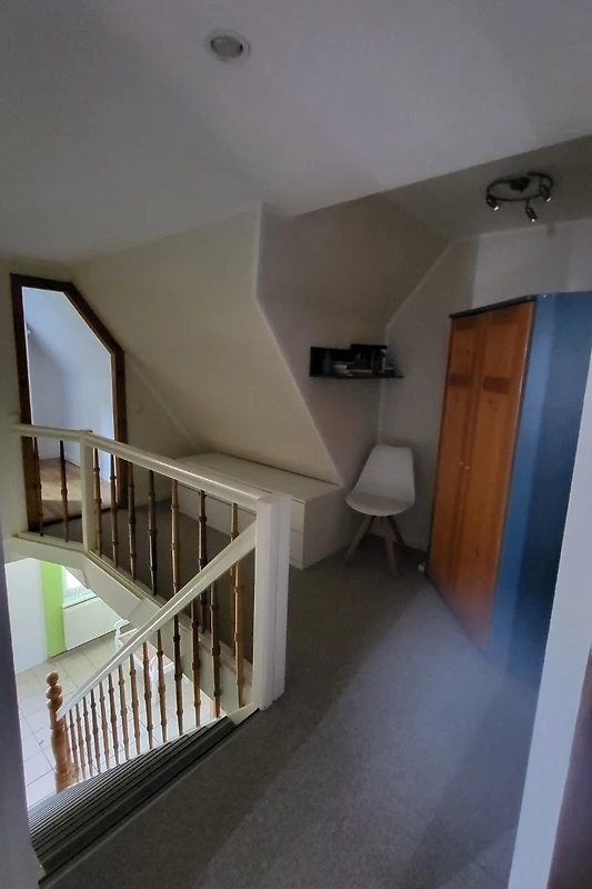 OG: 1 Schlafzimmer mit 2 Einzelbetten (je 90 x 200cm) , Tisch, Stuhl, Kleiderschrank.