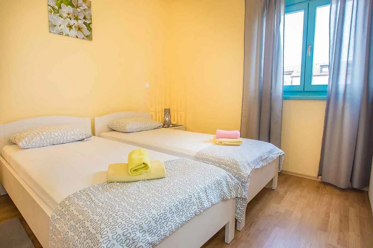 Gedići. Die Ferienwohnung befindet sich auf einem geschlossenen Gartengrundstück, von einem Zaun begrenzt. Parkplatz auf dem Grundstück.