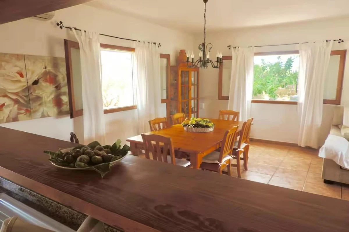 Dieses elegante Haus in Es Cubells bietet eine ruhige Auszeit am Mittelmeer mit atemberaubendem Meerblick und einer privilegierten Lage in der Nähe der schönsten Strände Ibizas, darunter Cala d’Hort und Ses Boques. Nur 100 Meter vom charmanten Ortskern mit Supermarkt und Restaurants entfernt, vereint das Haus Komfort, Privatsphäre und Bequemlichkeit. Das komplett umzäunte und von üppiger Natur umgebene Anwesen verfügt über einen privaten Parkplatz, einen stilvollen Swimmingpool und einen Chill-out-Bereich, wo Gäste entspannen und den Panoramablick auf das Meer genießen können.