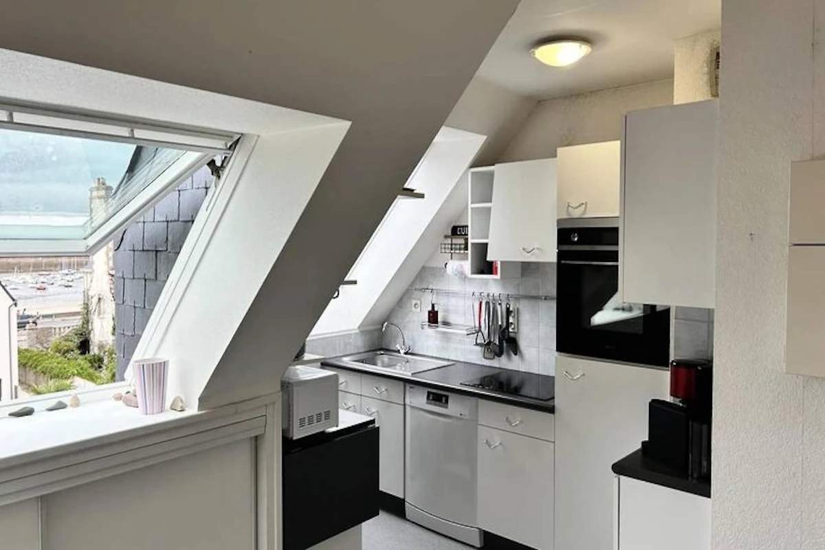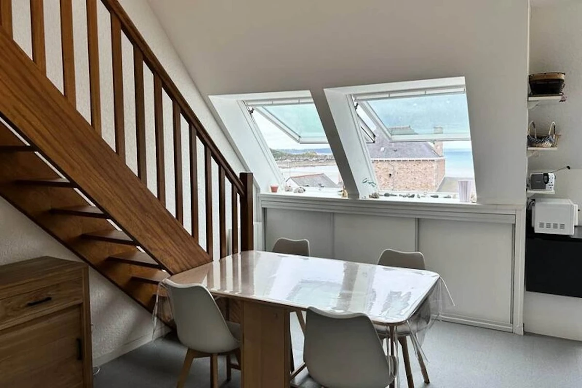 Erleben Sie die friedvolle Schönheit der Bretagne in diesem charmanten Apartment mit zwei Schlafzimmern, ideal gelegen im Herzen von Erquy. Mit Blick auf den malerischen Hafen und den goldenen Sandstrand von Bourg d'Erquy bietet diese private Unterkunft einen ruhigen Rückzugsort, nur wenige Schritte vom lebhaften Stadtzentrum und den Geschäften entfernt. Genießen Sie die frische Meeresbrise oder beobachten Sie die Gezeiten – jeder Moment hier ist vom Charme der Küste geprägt.