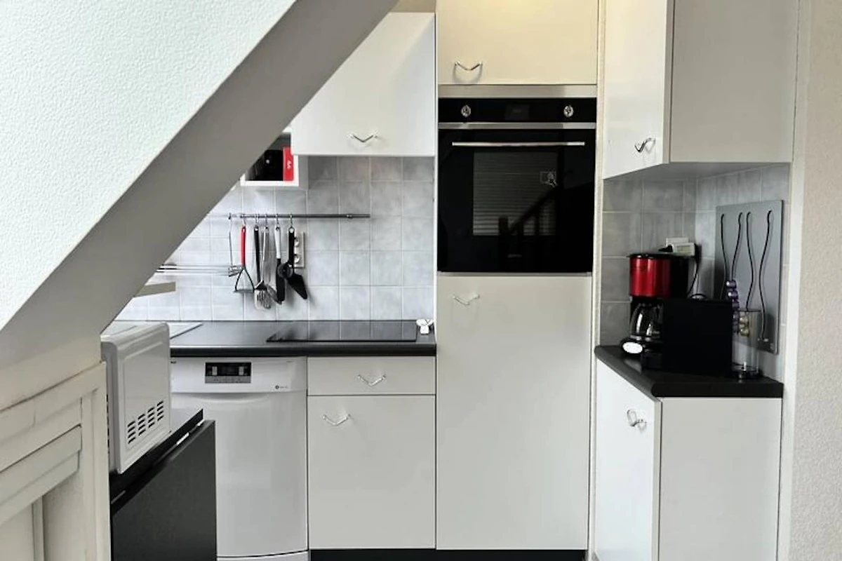 Das Apartment ist durchdacht gestaltet und vereint Komfort mit modernem Komfort. Das helle Wohnzimmer mit seinen gemütlichen Sesseln, Fernseher und Hi-Fi-Anlage bietet einen atemberaubenden Blick auf Strand und Hafen. Der angrenzende Essbereich bietet bequem Platz für vier Personen, und die voll ausgestattete Küche lässt keine Wünsche offen – von der Nespresso-Maschine bis zum Geschirrspüler –, um köstliche Mahlzeiten zuzubereiten. Im Erdgeschoss befinden sich ein ruhiges Schlafzimmer mit einem Queensize-Bett, ein Badezimmer mit Badewanne und Duschabtrennung sowie ein separates WC. Im Obergeschoss befindet sich ein zusätzliches Schlafzimmer mit Queensize-Bett, ein Wohnbereich mit Sofa und Smart-TV sowie ein einladender Raum zum Entspannen.