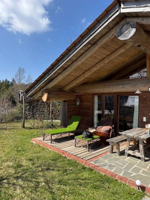 Das Blockhaus ist komplett ausgestattet und versprüht durch die behagliche Einrichtung im alpinen Stil urige Gemütlichkeit, Komfort und Wohlfühlatmosphäre. Das Blockhaus verfügt über 2 Schlafzimmer sowie einem grossen Wohn-/Essbereich mit offener Küche. Auf der grosszügigen Terrasse und im eigenen Gartenanteil lässt es sich wunderbar erholen und die Sonne und Naturkulisse geniessen.