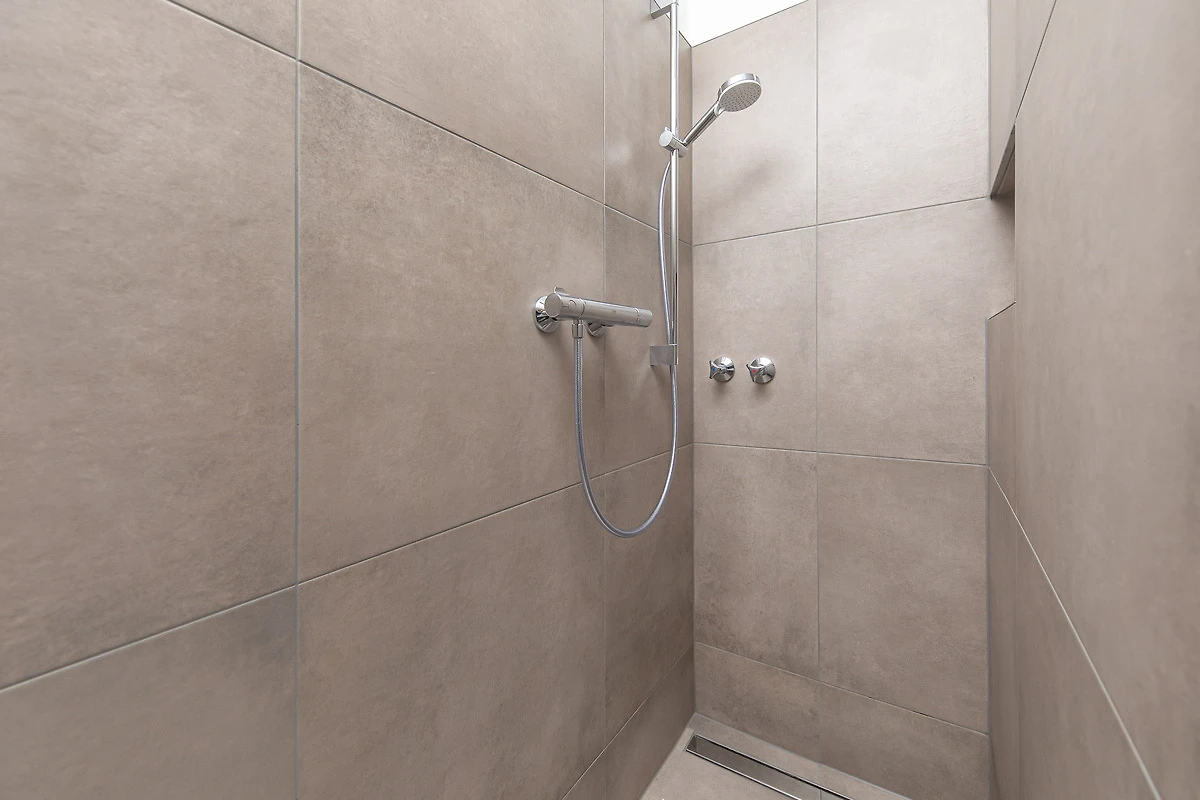 In dem komplett sanierten Badezimmer erwarten Sie eine Dusche, ein Handtuchwärmer sowie ein WC.