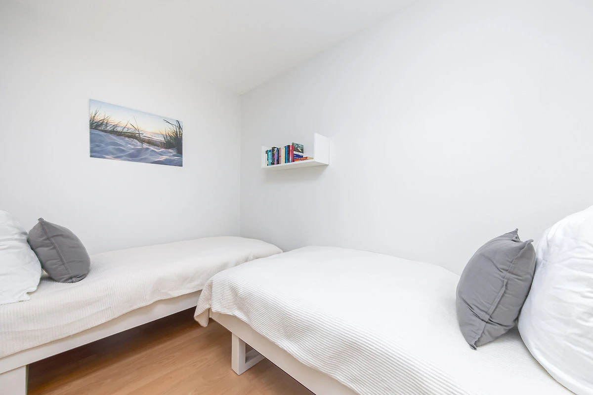 Das Schlafzimmer dieser Ferienwohnung ist mit zwei Einzelbetten (je 80x200cm) und einem Kleiderschrank eingerichtet. Der Erholungsschlaf ist hier garantiert!