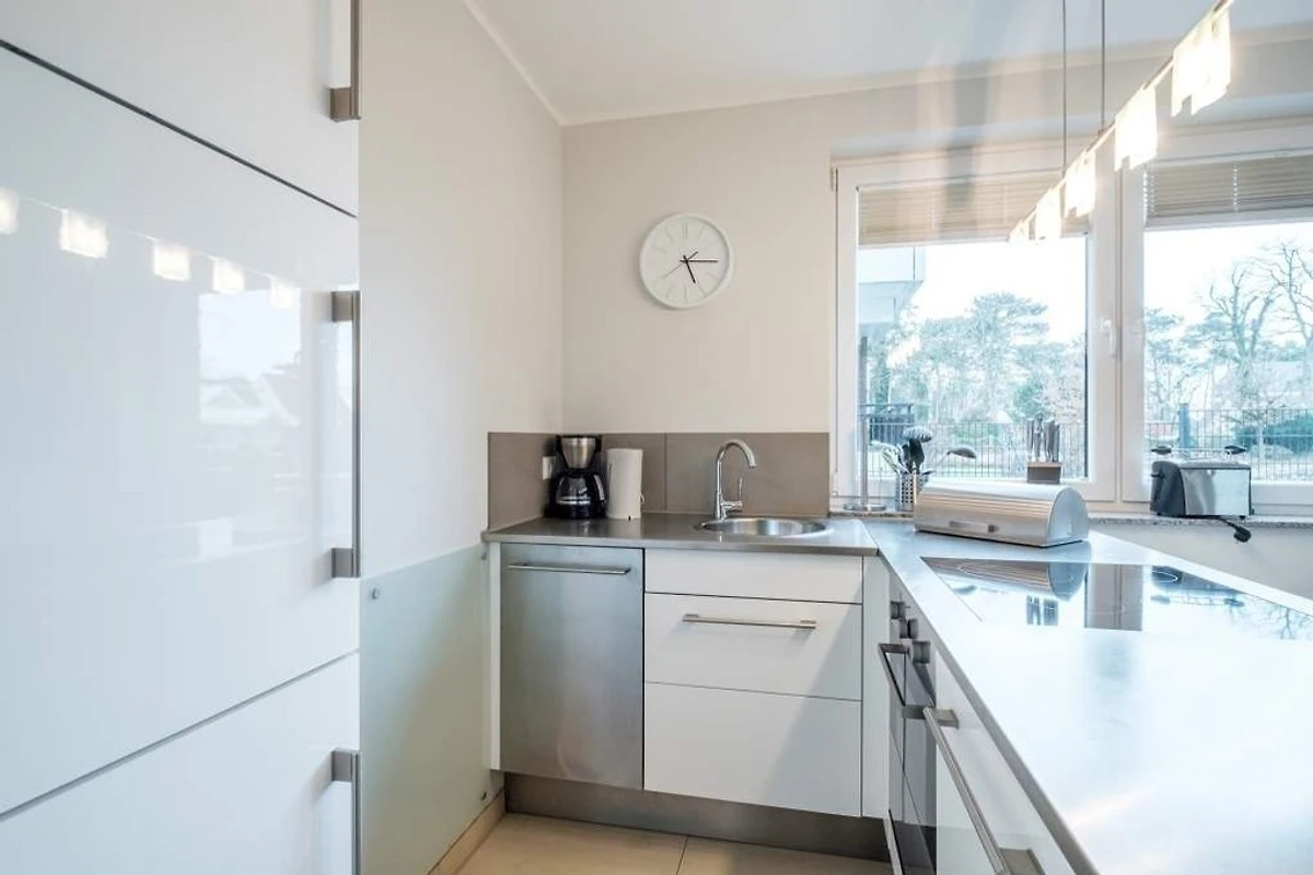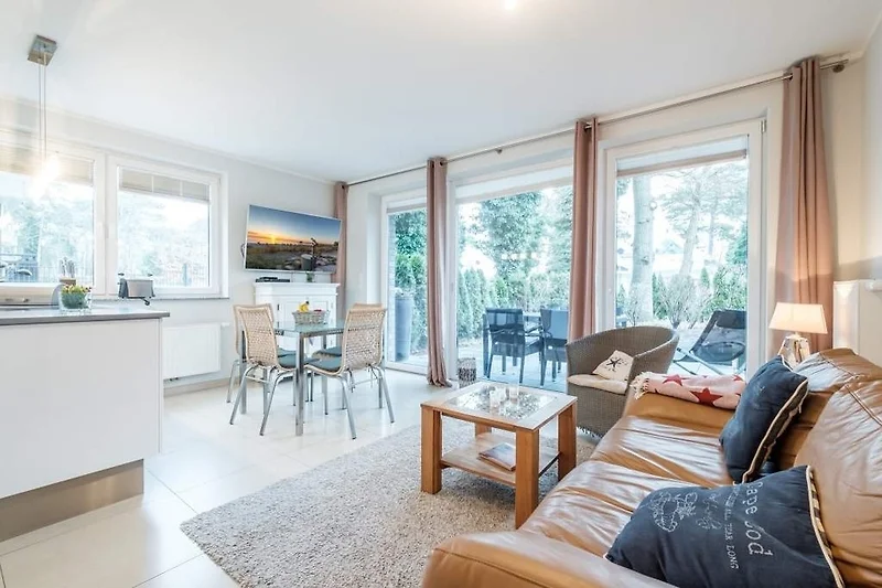 Die 2-Zimmer-Ferienwohnung Blankenese liegt im Erdgeschoss mit Terrasse und ist für maximal 3 Personen ausgestattet. Diese Timmendorfer Strand Ferienwohnung ist sehr komfortabel und bietet einen wunderschönen Rahmen für einen gelungenen Urlaub an der Ostsee. Das Appartement verfügt ein über kombiniertes Wohn-/Schlafzimmer mit einer hochwertigen Schlafcouch, Flachbild-TV, eine gemütliche Essecke mit angrenzender, offener Einbauküche mit Ceranfeld, Backofen und Geschirrspüler. Ein modernes Duschbad mit Fenster ist vorhanden.