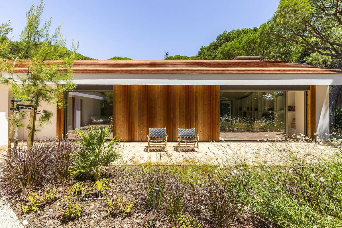 This contemporary modern villa, filled with light and spacious rooms is nestled in the Quinta da Marinha area.